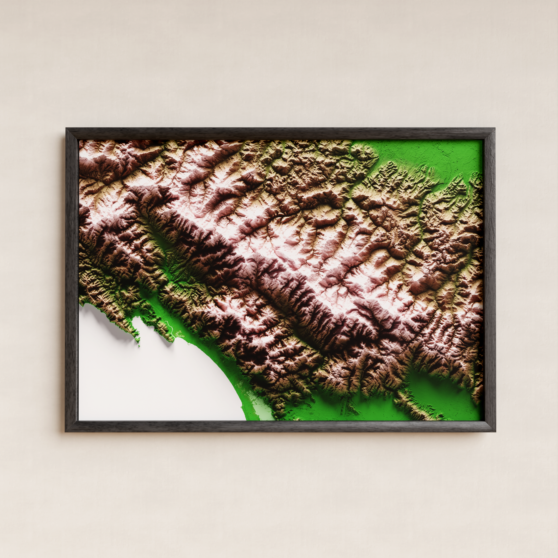 La impresión de mapa de relieve Classic Alps de Apuan es un hermoso homenaje a la impresionante geografía de esta cordillera italiana.Perfecto como regalo para los seres queridos o como una pieza de declaración para su propio espacio, este mapa es imprescindible para aquellos que aprecian la majestuosidad de los Alpes de Apuan y el arte de la cartografía excepcional.
