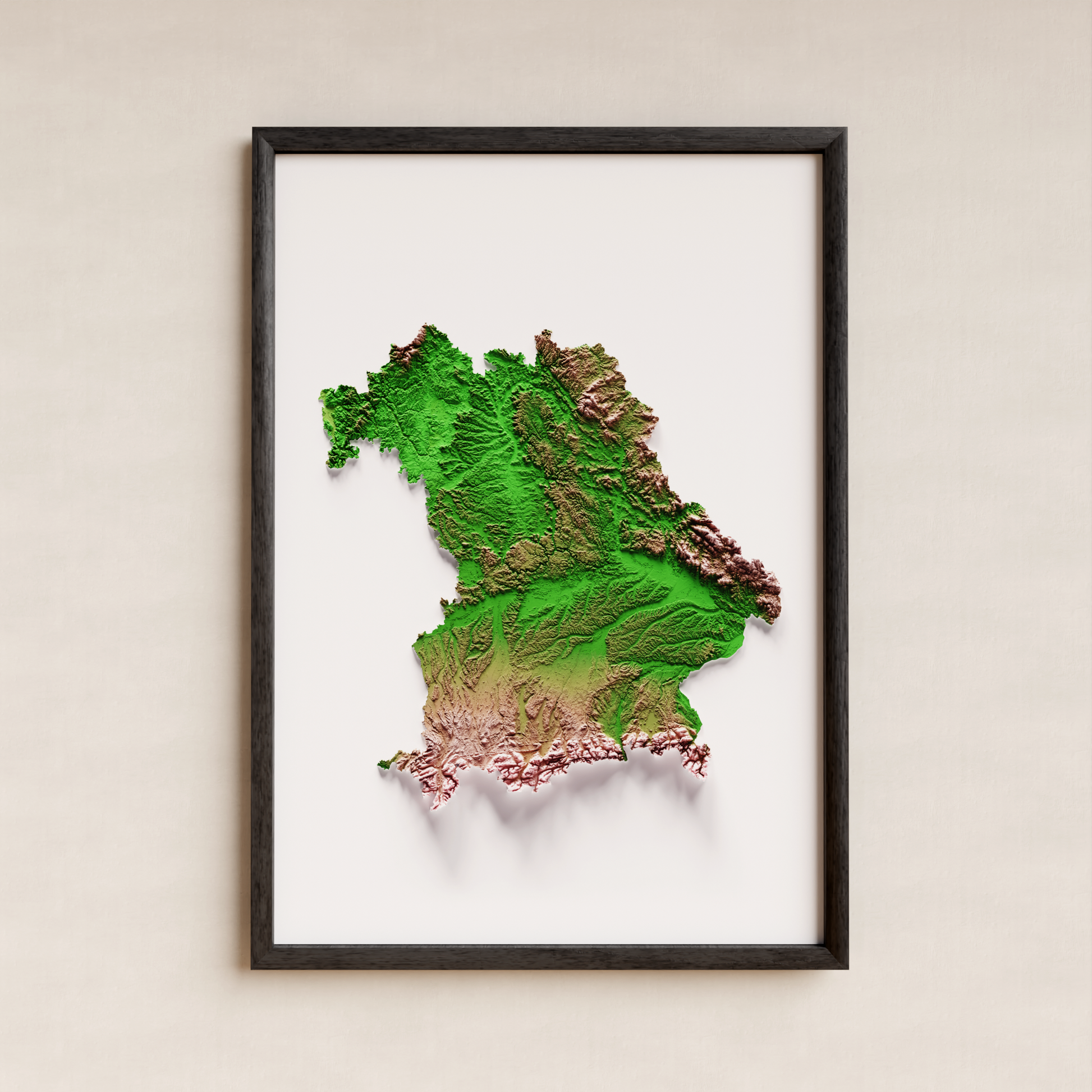 Experimente el encanto de las dramáticas características geográficas de Bavaria con este clásico estampado de mapa de relieve.Desde los majestuosos Alpes hasta los tranquilos lagos y los pintorescos valles, la topografía de Bavaria está bellamente capturada en este diseño minimalista pero cautivador.El complemento perfecto para cualquier hogar u oficina, o un regalo reflexivo para un ser querido, deje que esta impresionante impresa lo transporte al corazón del notable paisaje de Bavaria.