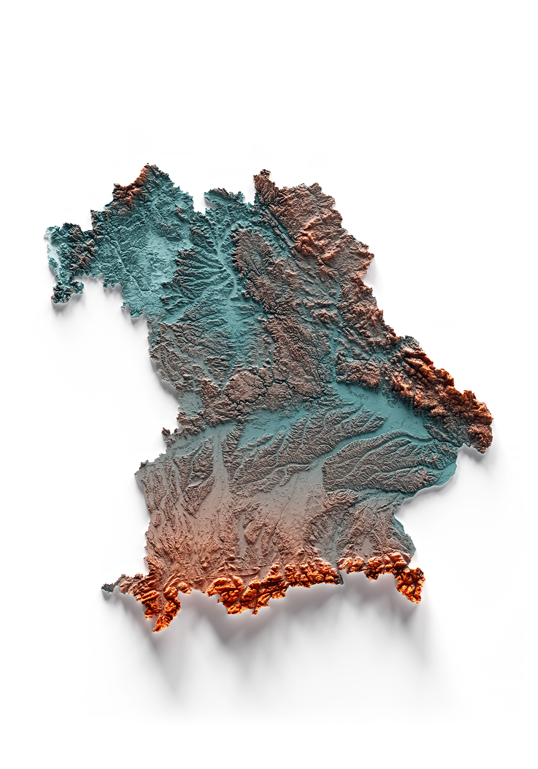 Sumérgete en las impresionantes características geográficas de Bavaria con esta impresión de mapa de relieve de contraste.Desde los impresionantes Alpes hasta los bosques verdes y los lagos serenos, la topografía de Bavaria está bellamente capturada en este diseño minimalista pero llamativo.El complemento perfecto para cualquier hogar u oficina, o un regalo reflexivo para un ser querido, deje que esta fascinante impresión lo transporte al corazón de la impresionante geografía de Bavaria.