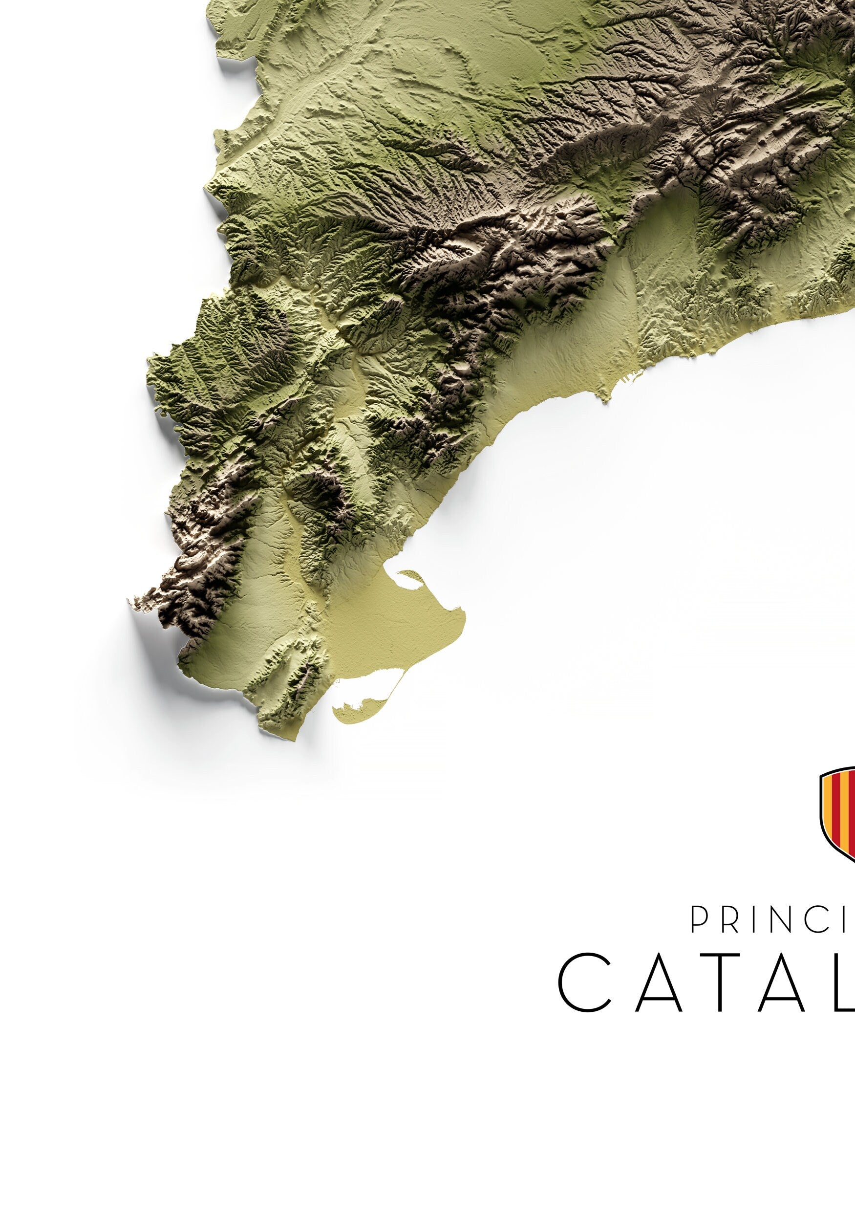 Mapa de relieve artístico en colores terrosos de Catalunya.