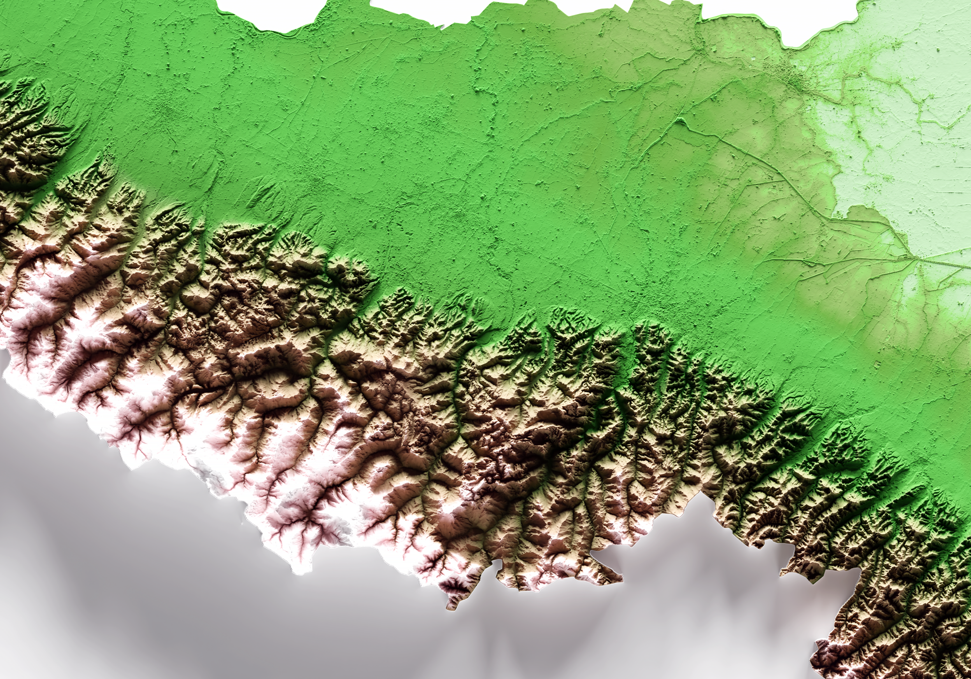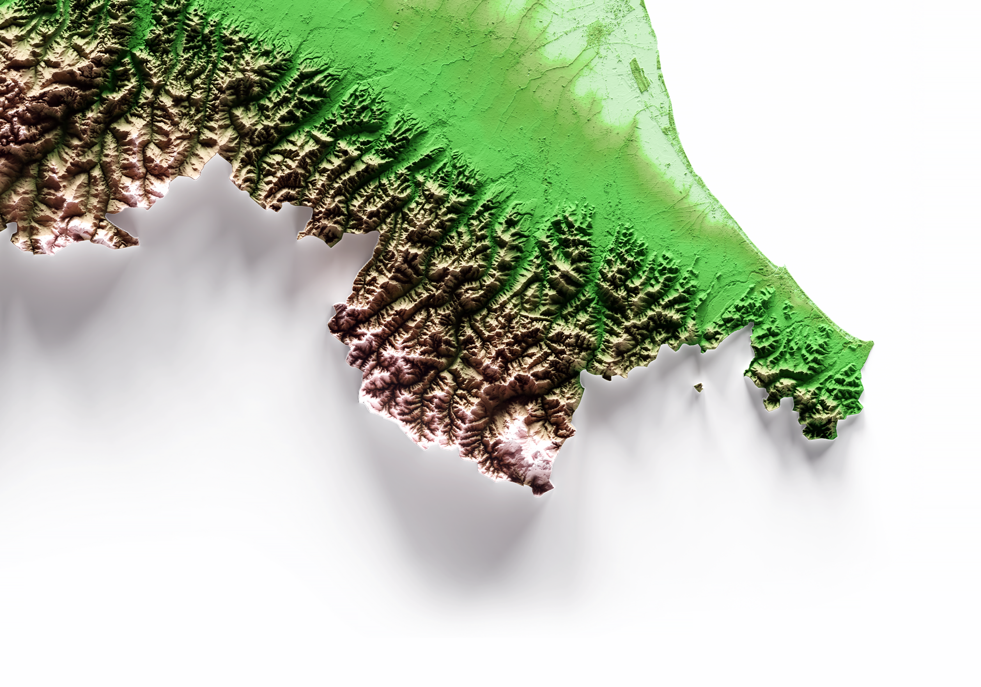 EMILIA-ROMAÑA. Mapa de relieve clásico.