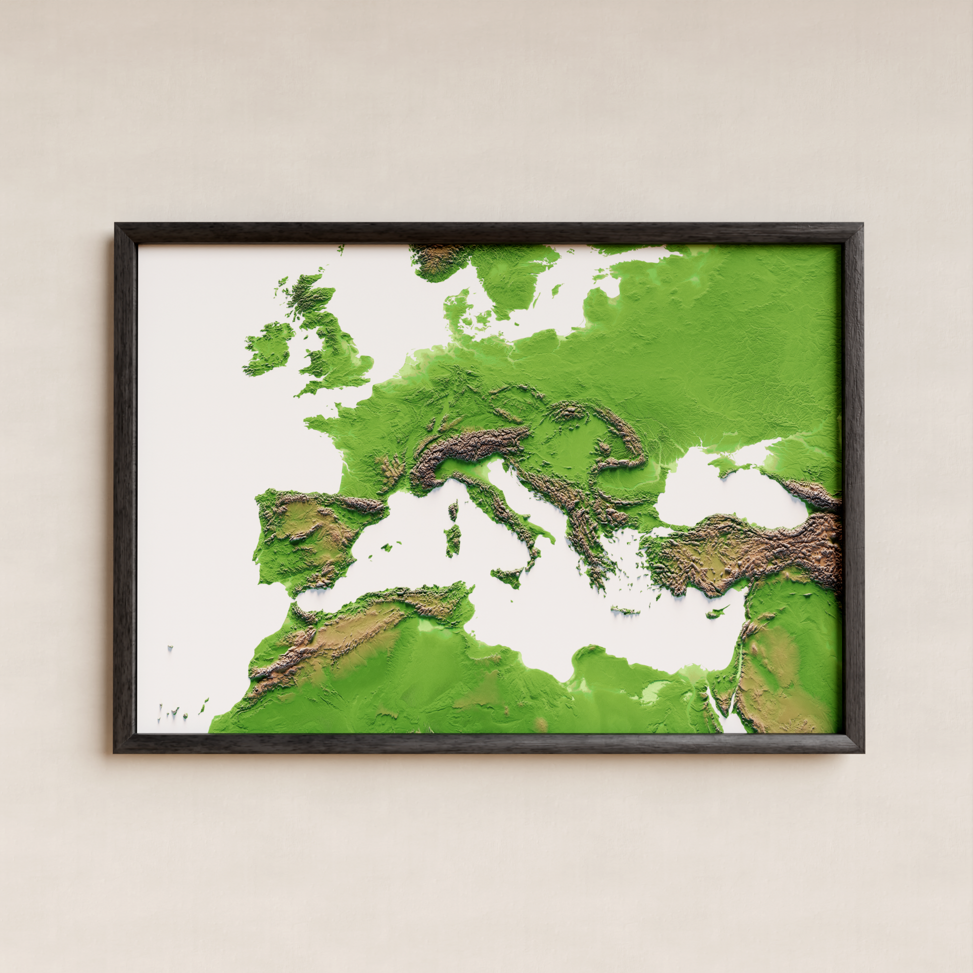 Nuestro mapa clásico de Europa es una impresión plana de alta calidad que está cuidadosamente elaborada en papel con calidad de museo, lo que garantiza la longevidad y la durabilidad.El diseño minimalista presenta alivio, con colores que van desde verduras hasta marrones y blancos que aumentan con la altura.El mar es blanco nítido, proporcionando un fuerte contraste con la topografía detallada del continente.