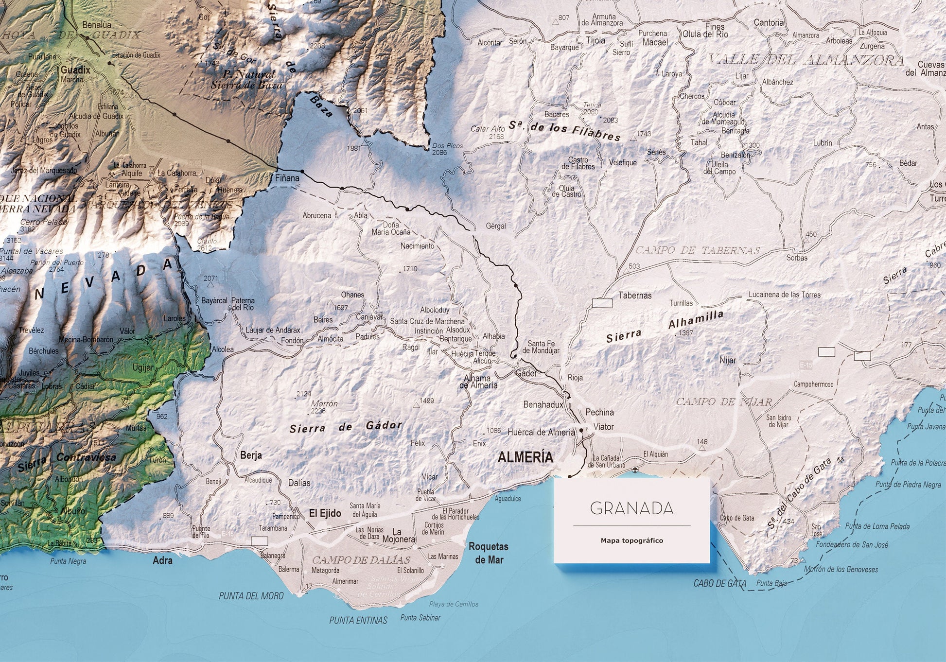 Mapa topográfico en color de la província de Granada.