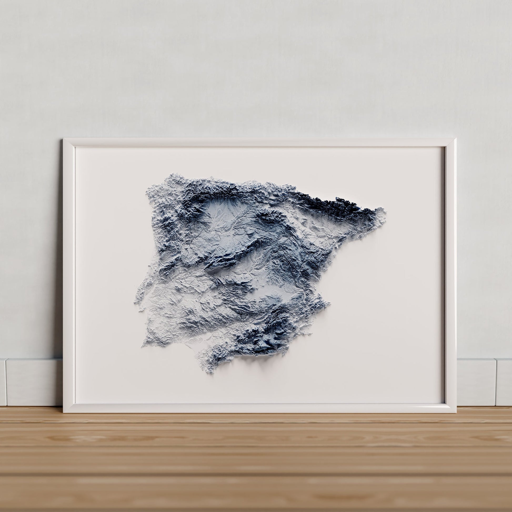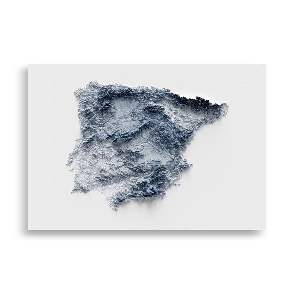 IBERIA. Mapa de relieve. Mapa artístico en un color.