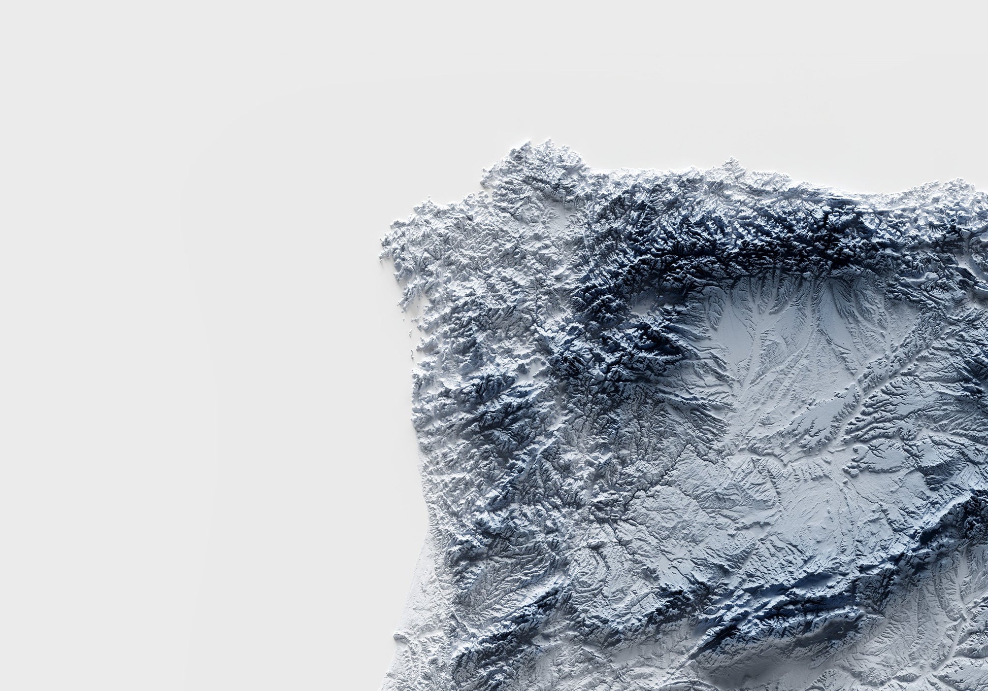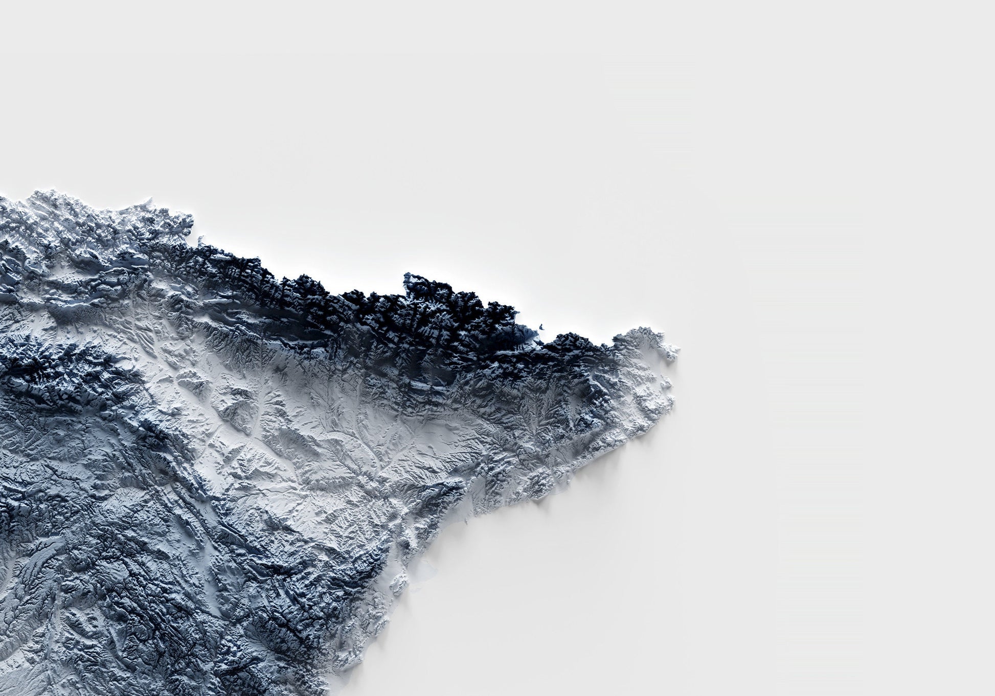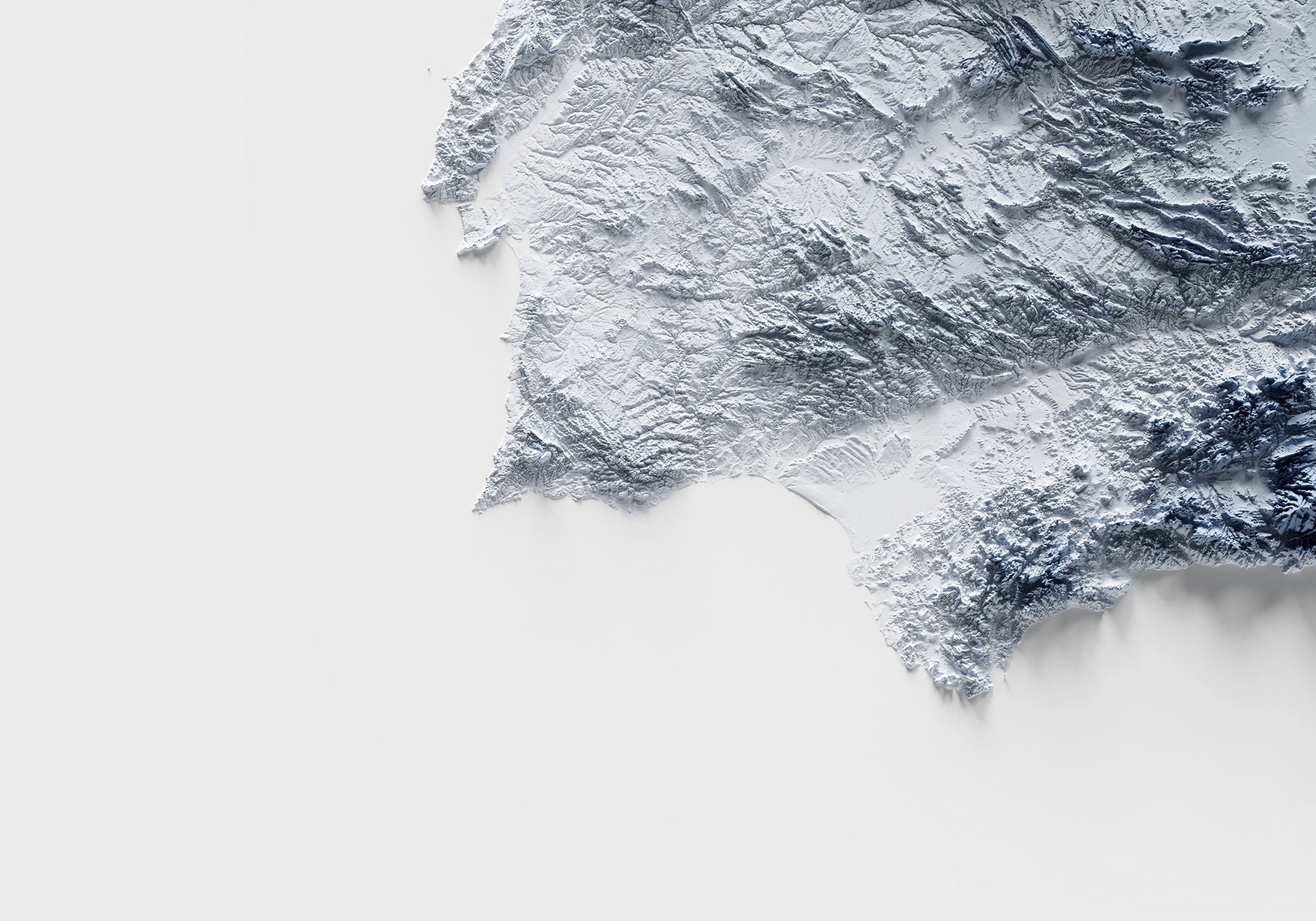 Mapa de relieve en color de Iberia. Versión en 1 color.