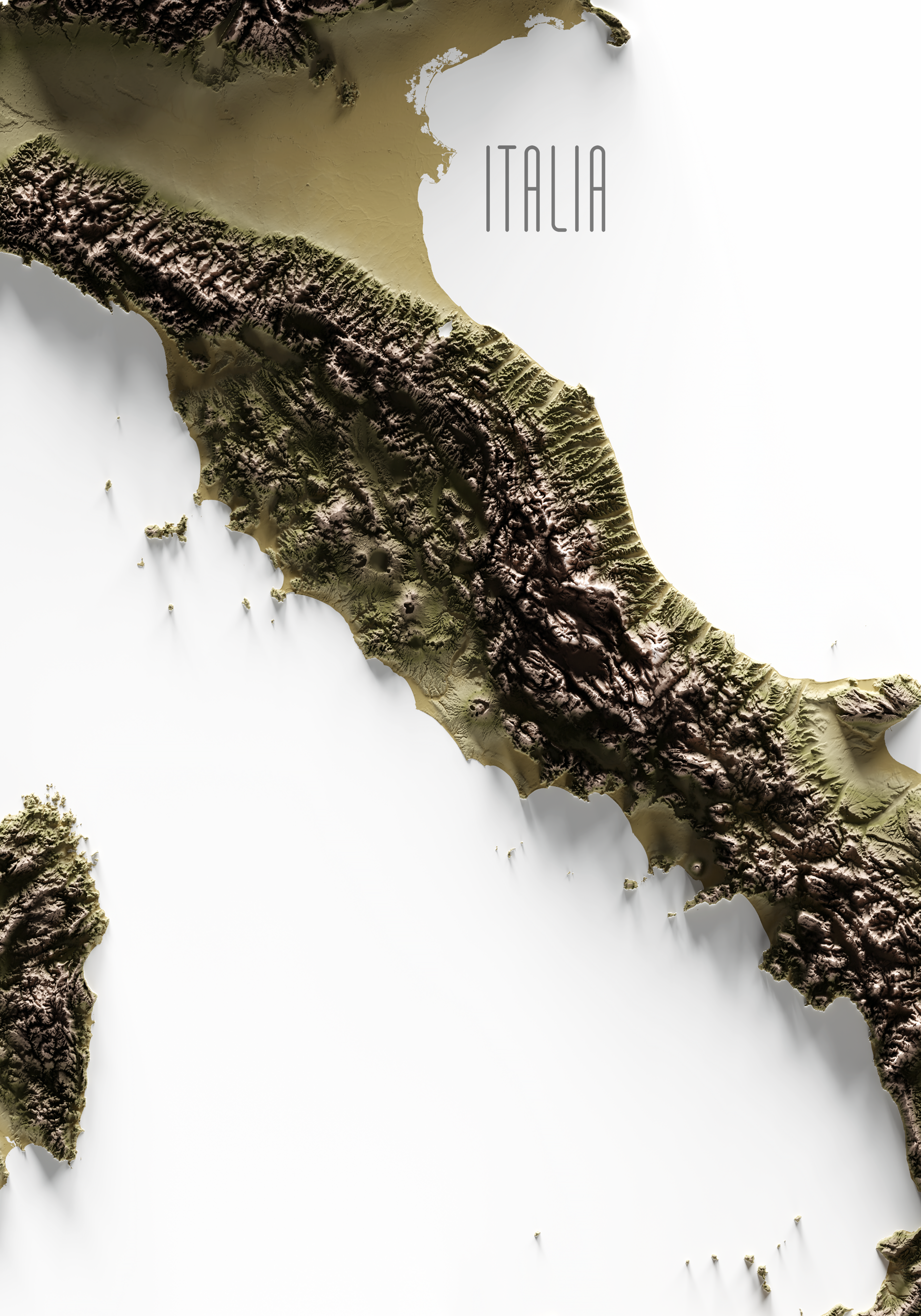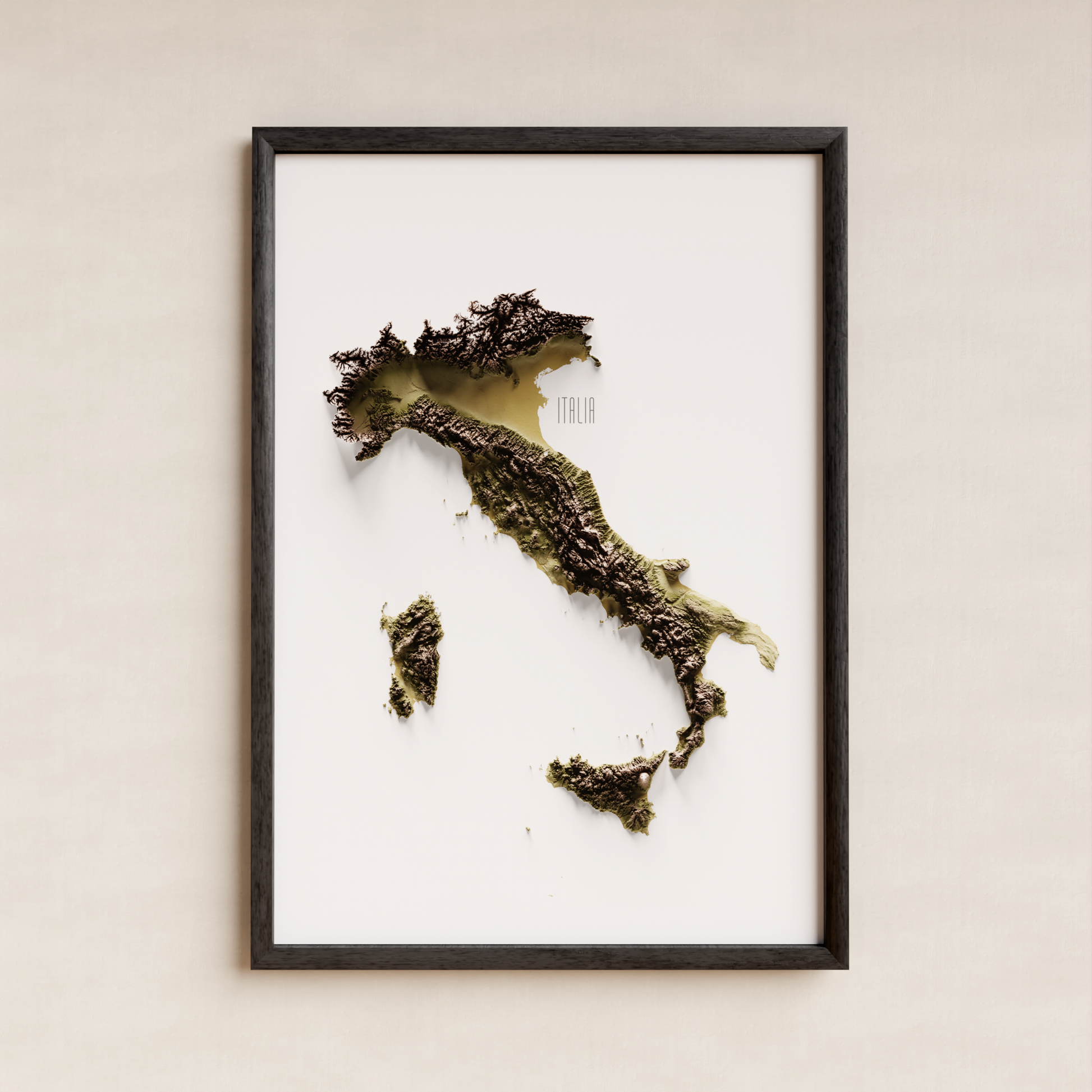 Experimente el atractivo de las dramáticas características geográficas de Italia con esta impresión de mapa de ayuda terrestre.Desde los picos alpinos en el norte hasta las costas bañadas por el sol del Sur, la topografía de Italia está bellamente capturada en este diseño minimalista pero cautivador.La adición perfecta a cualquier hogar u oficina, o un regalo reflexivo para un ser querido, deje que este impresionante impreso lo transporte al corazón del paisaje italiano.