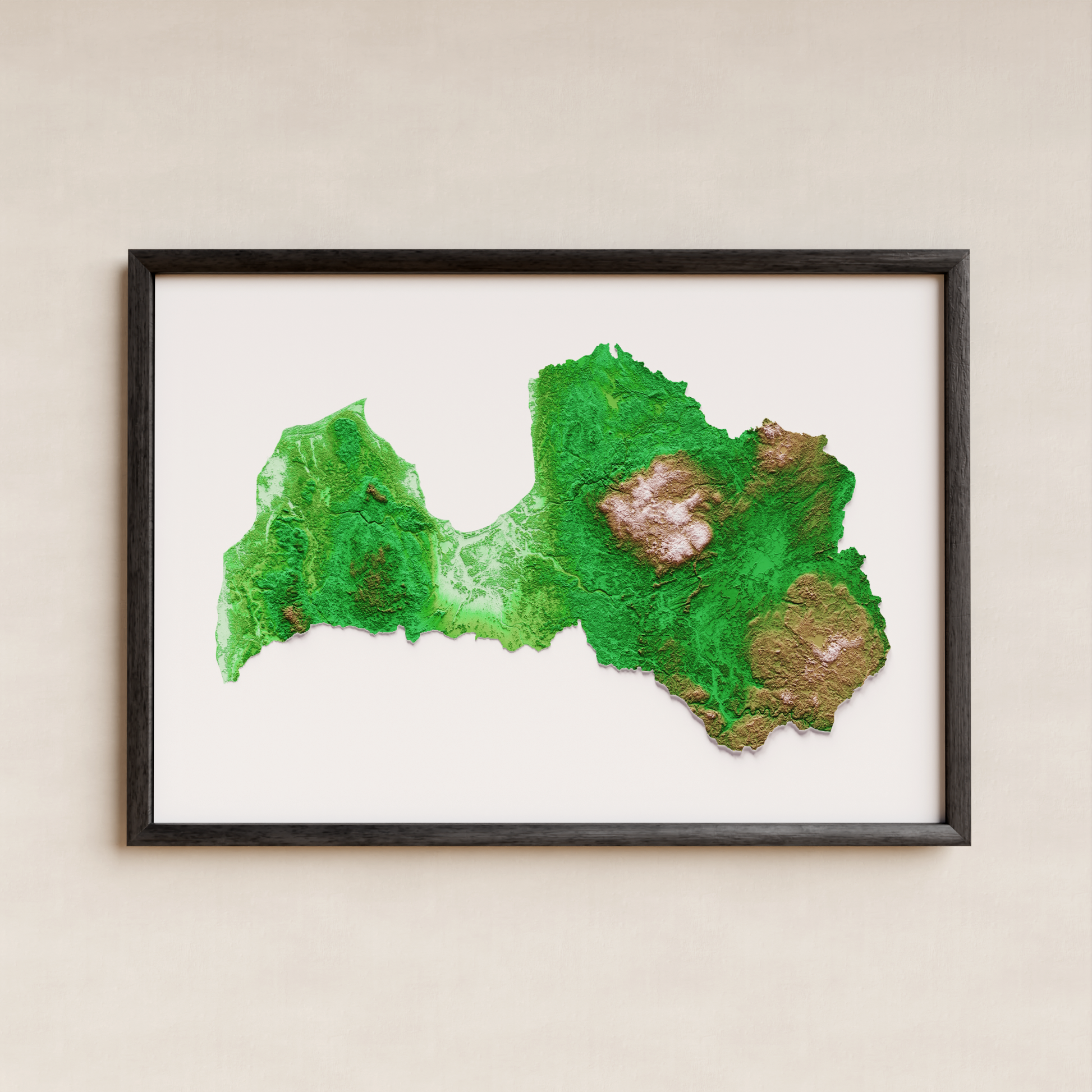 Nuestra estampado de mapa de relieve clásico está diseñada con un enfoque minimalista, centrado en la topografía natural y las elevaciones del paisaje de Letonia.La paleta de colores pasa de verduras vibrantes a marrones y blancos cálidos, aumentando con la altura, mientras que el mar blanco crujiente captura perfectamente la esencia del Mar Báltico.