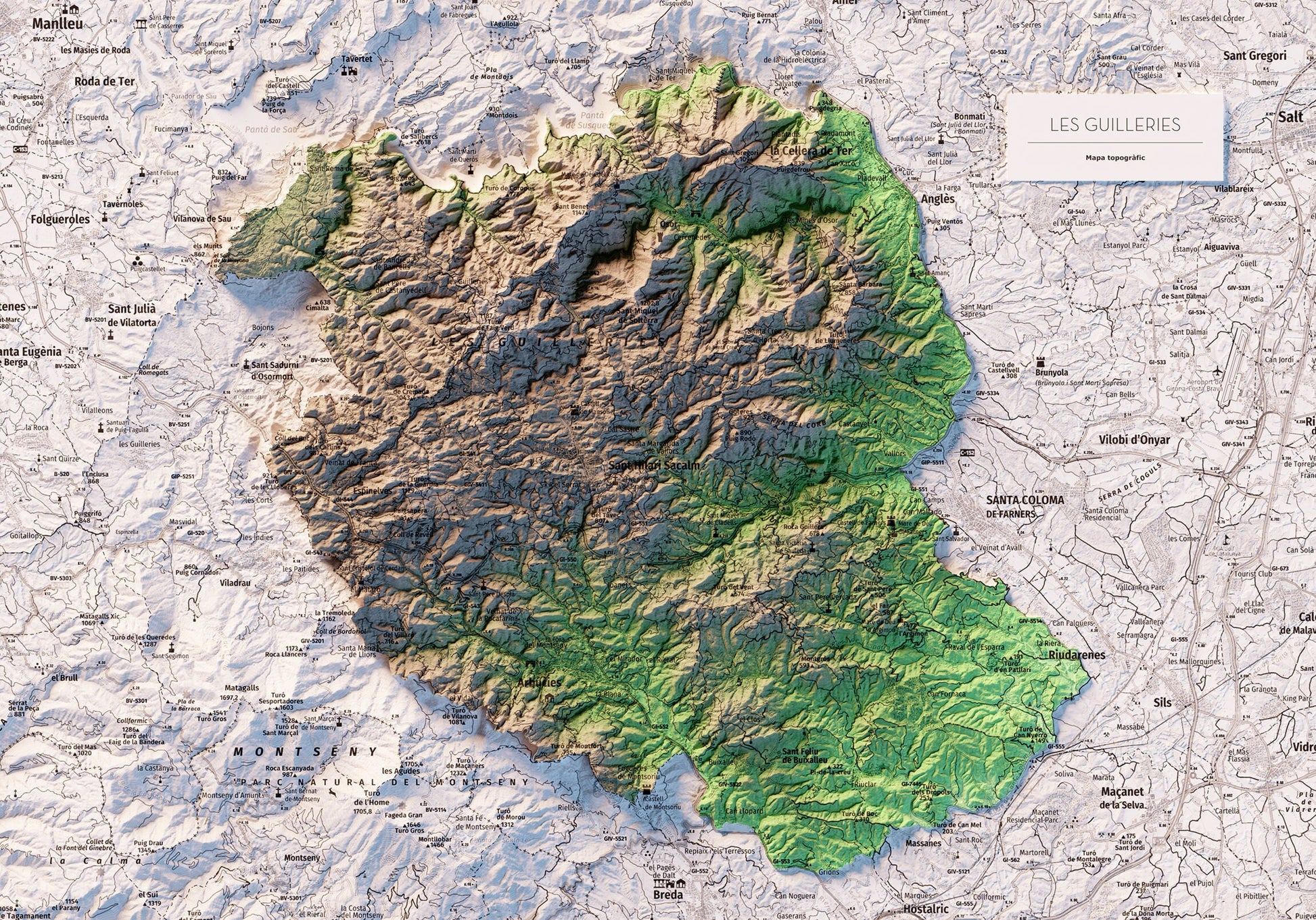 Mapa topográfico en color de les Guilleries.