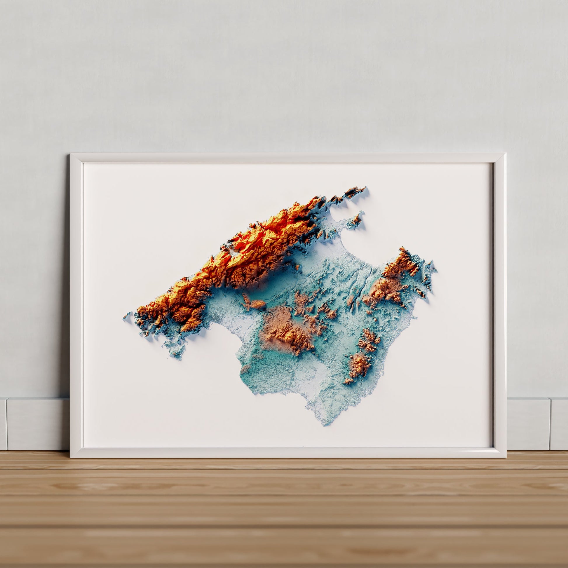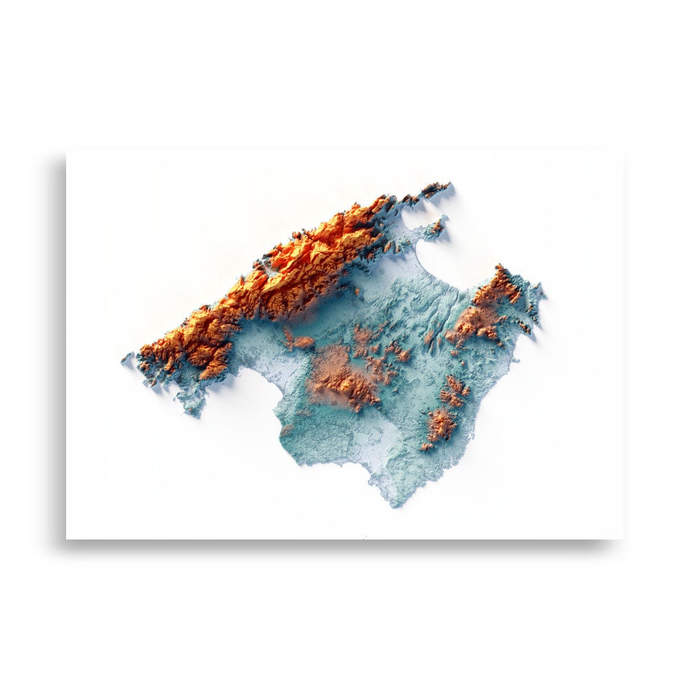 MALLORCA. Mapa de relleu artístic blau i taronja.