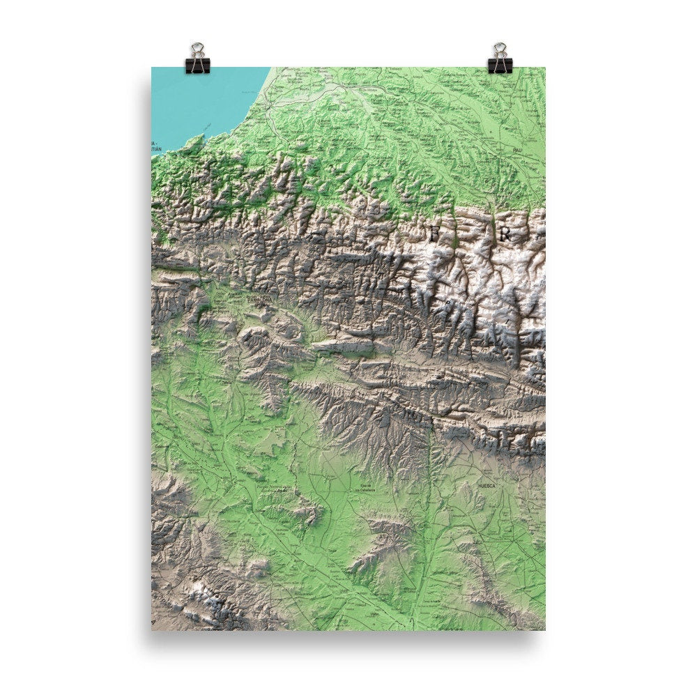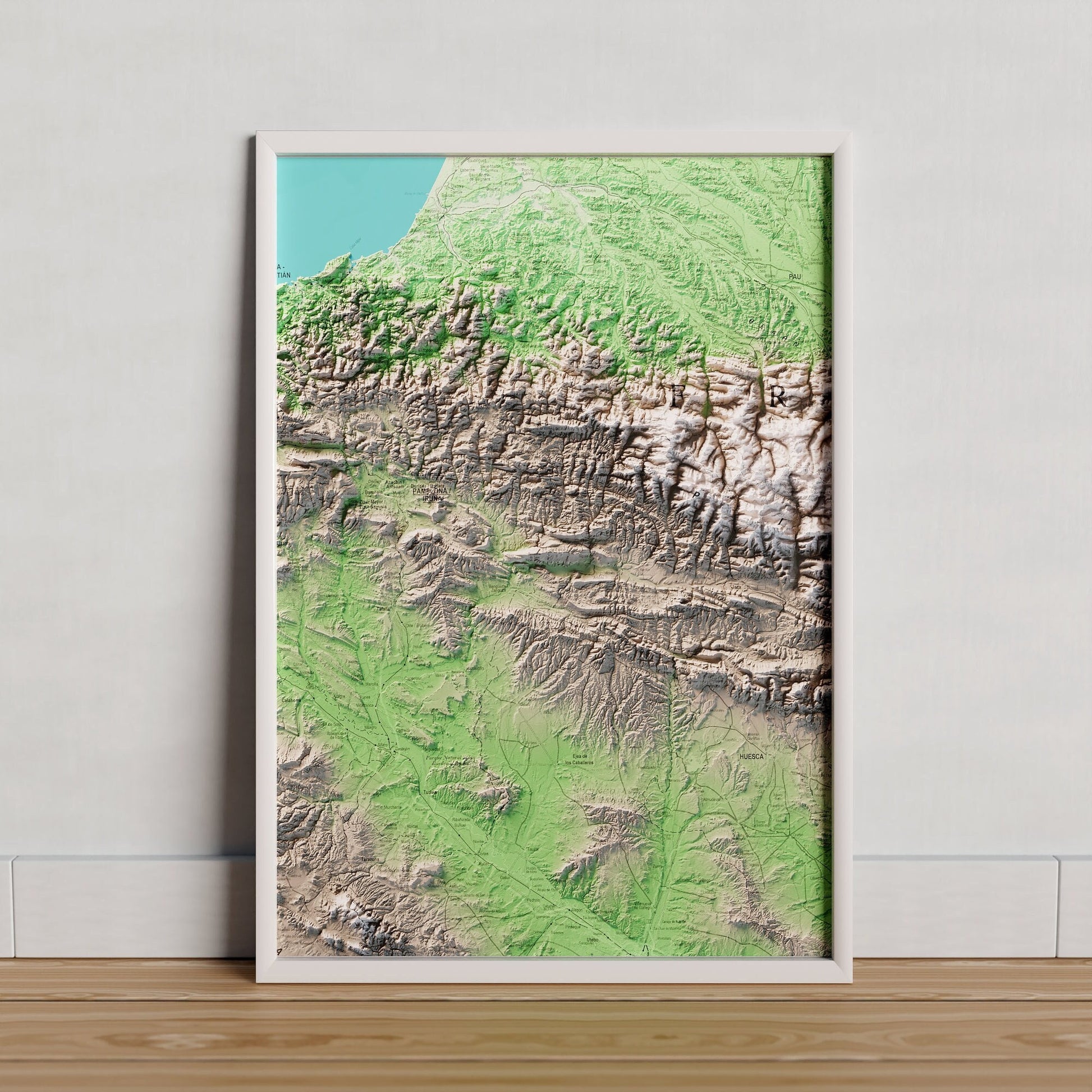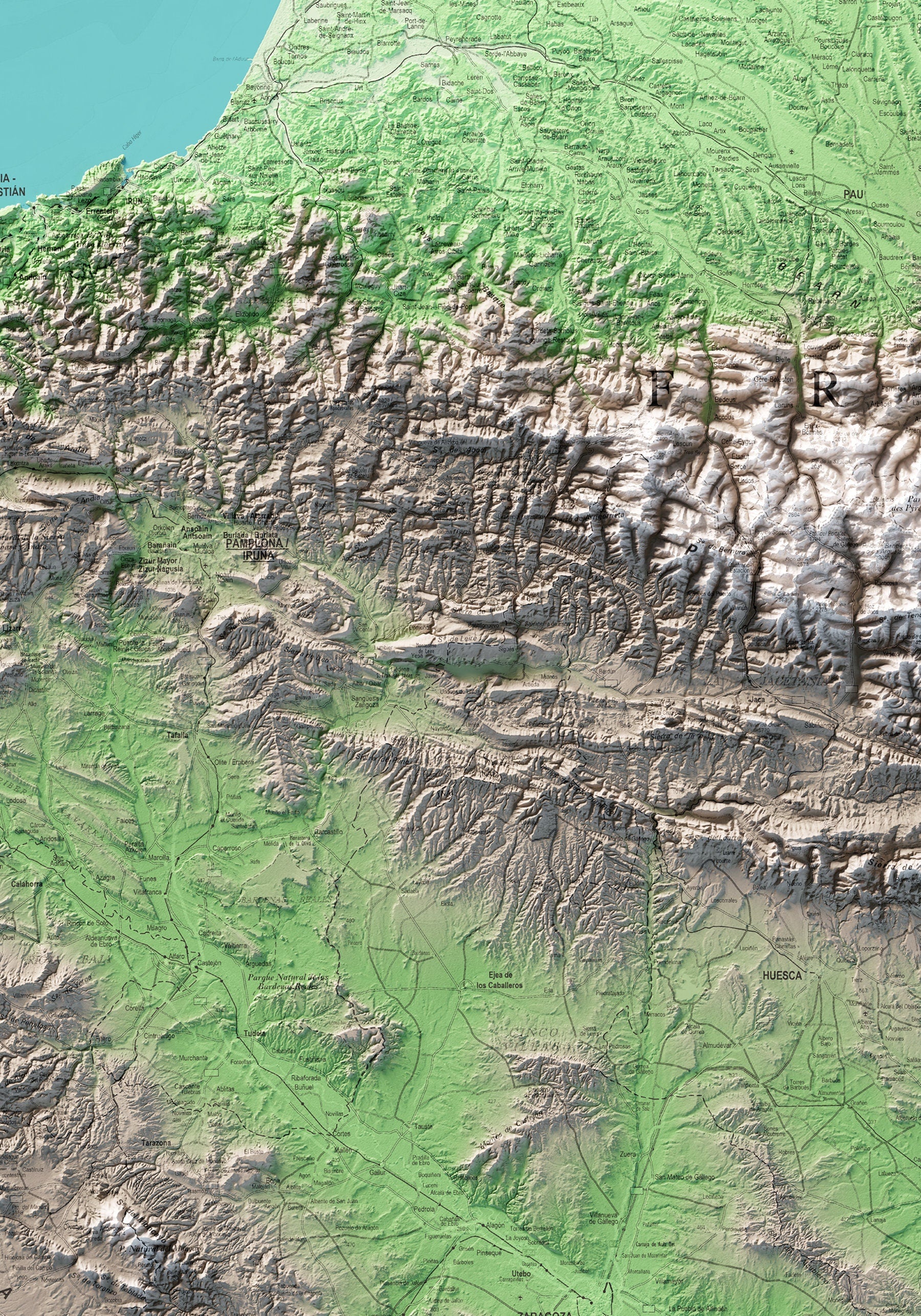 MAPA TOPOGRÁFICO EN COLOR DEL PIRINEO COMPLETO, VERSIÓN EN 3 PARTES. Parte IZQUIERDA (1)