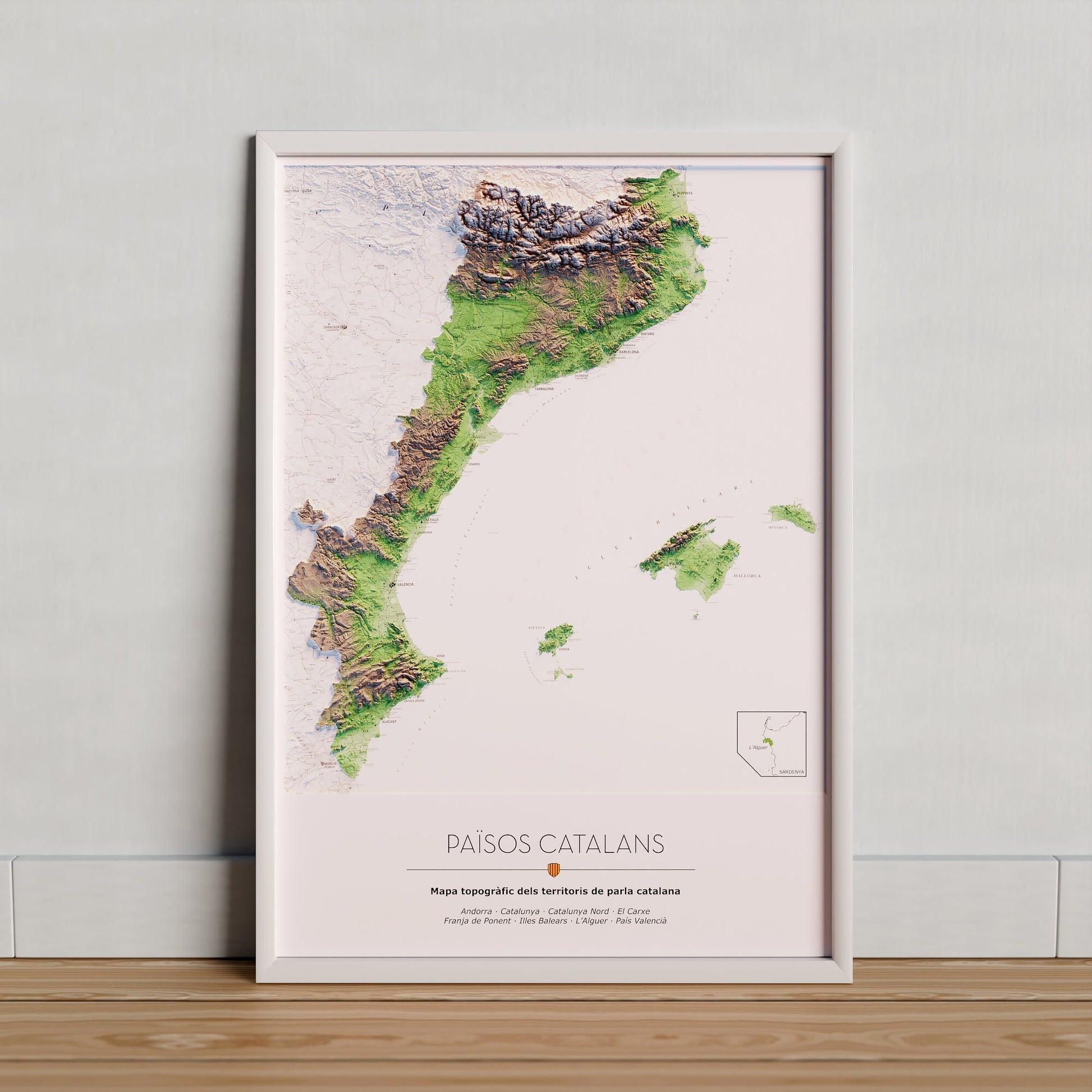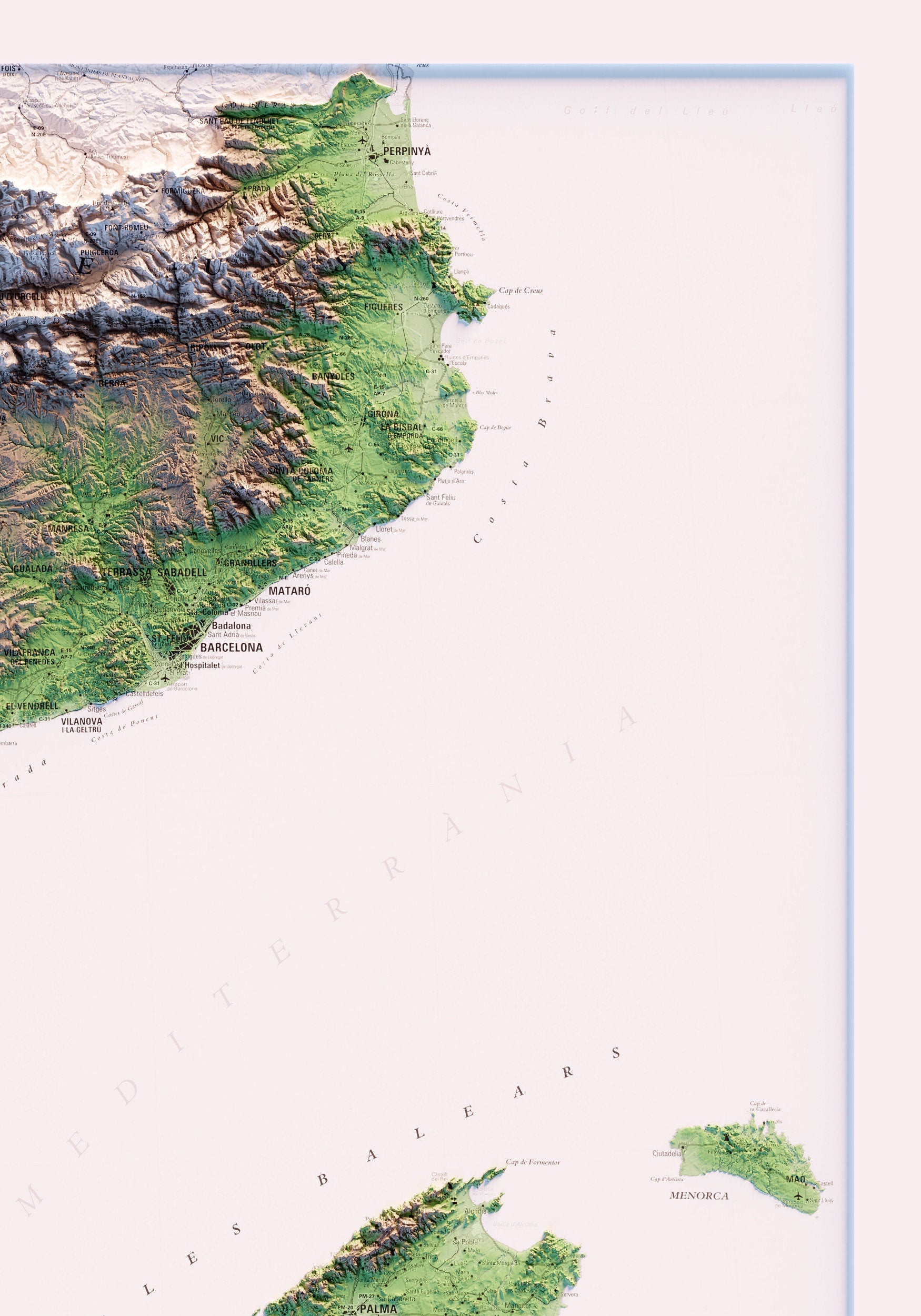 Mapa topográfico en color de los países catalanes. Nueva versión con el mar blanco.