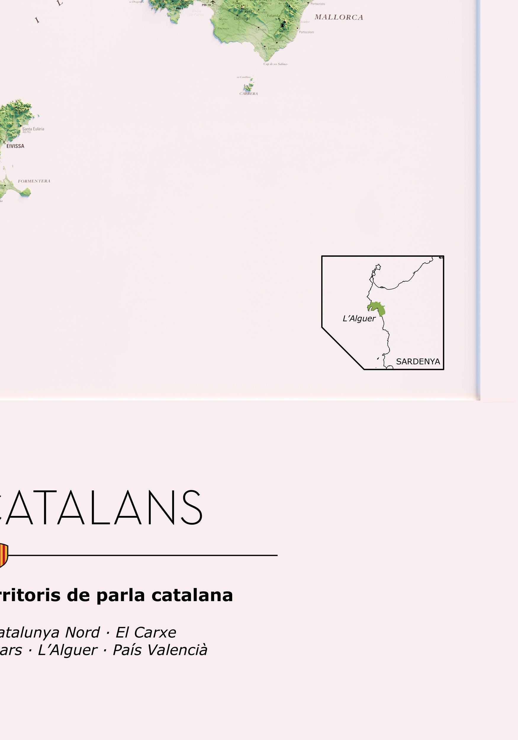 PAÏSOS CATALANS. Mapa topográfico. Versió amb el mar blanc.