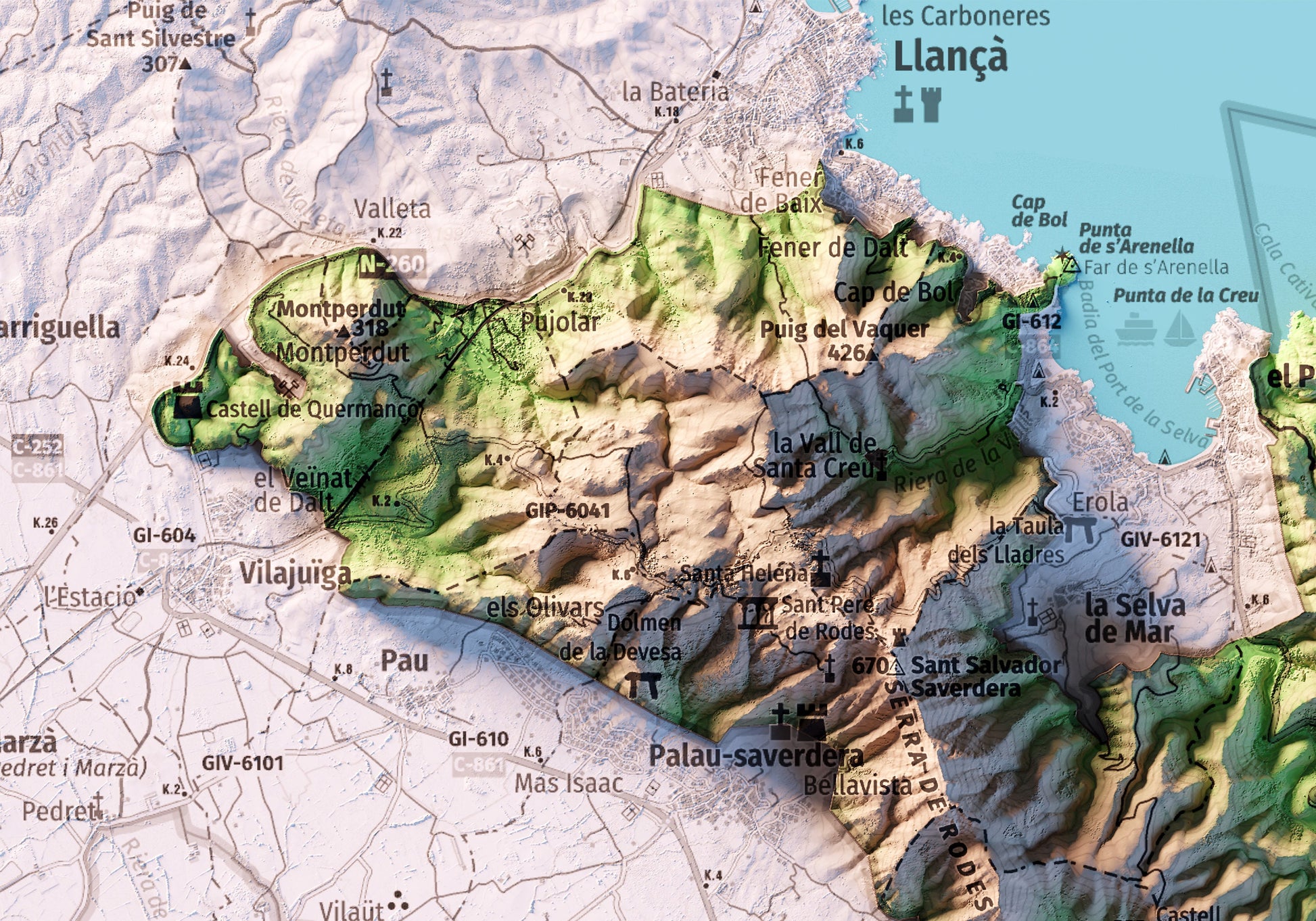 Mapa topográfico en color del parque natural del Cap de Creus.