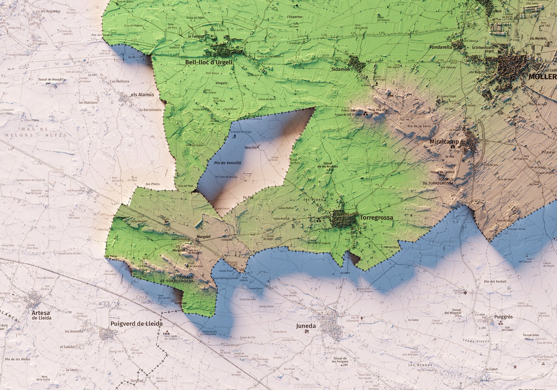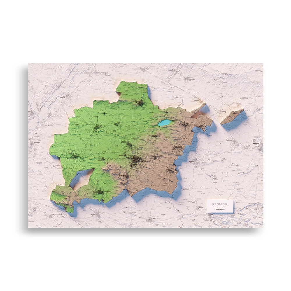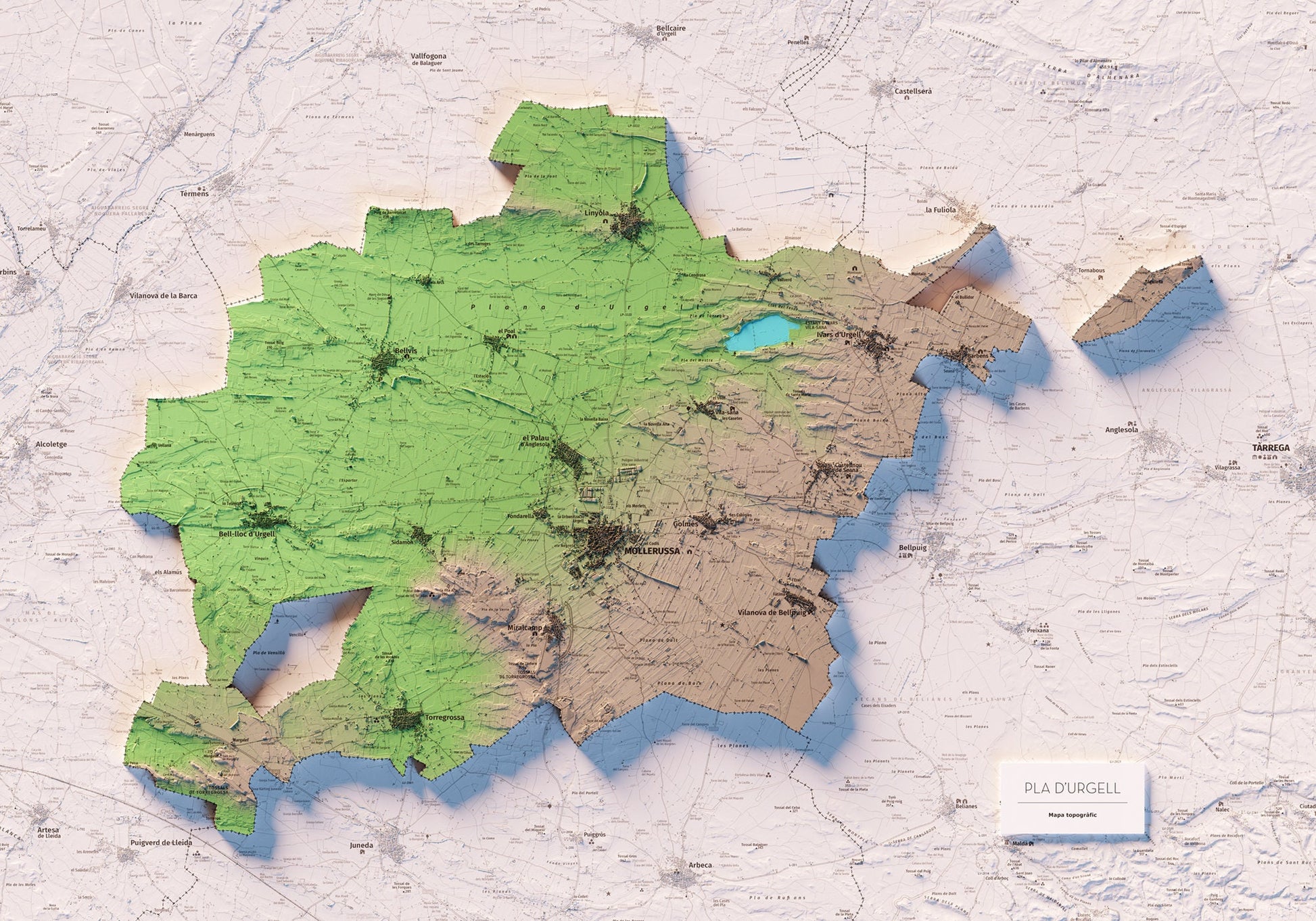 Mapa topográfico en color del Pla d'Urgell.