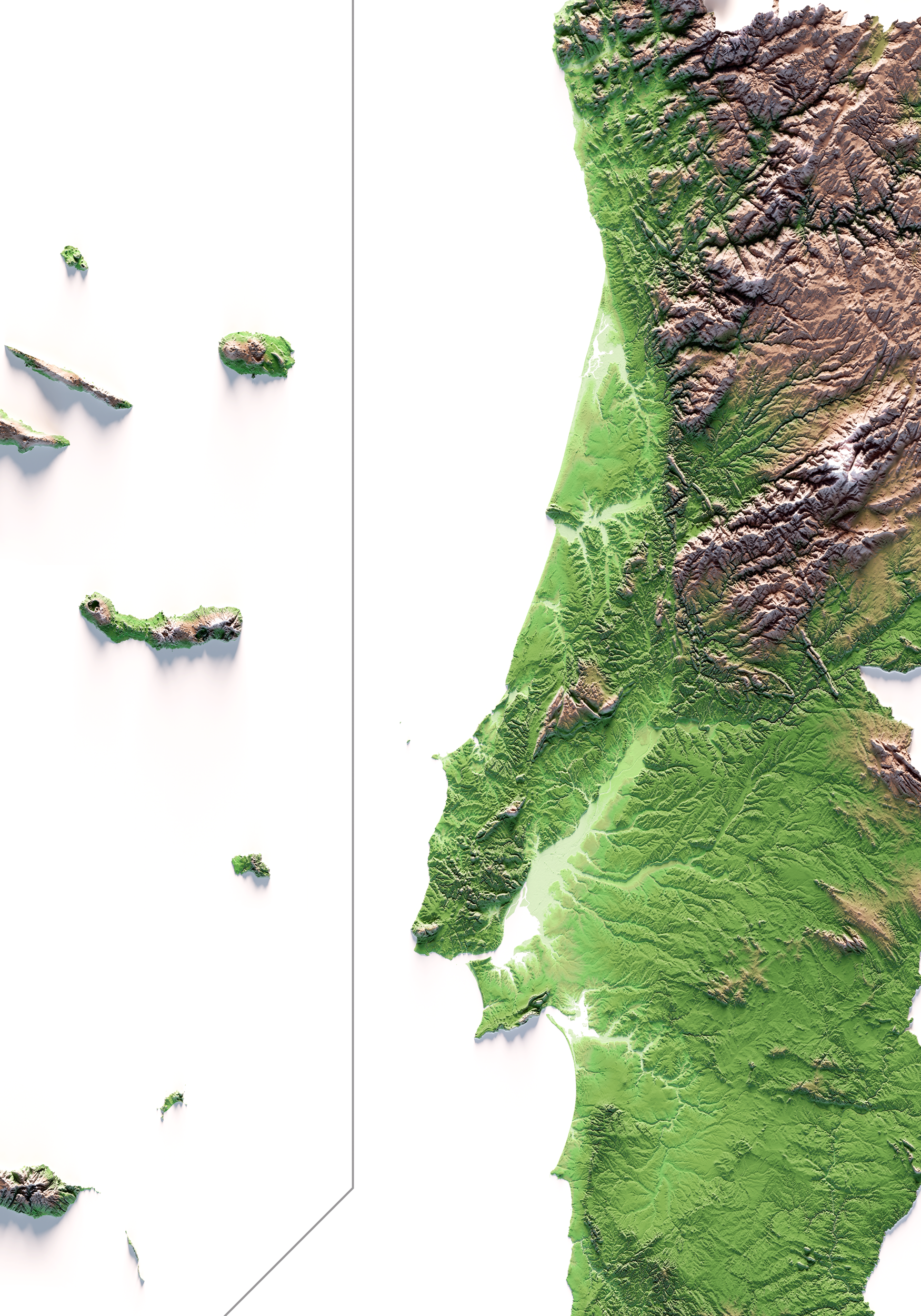 PORTUGAL. Mapa de relieve clásico.