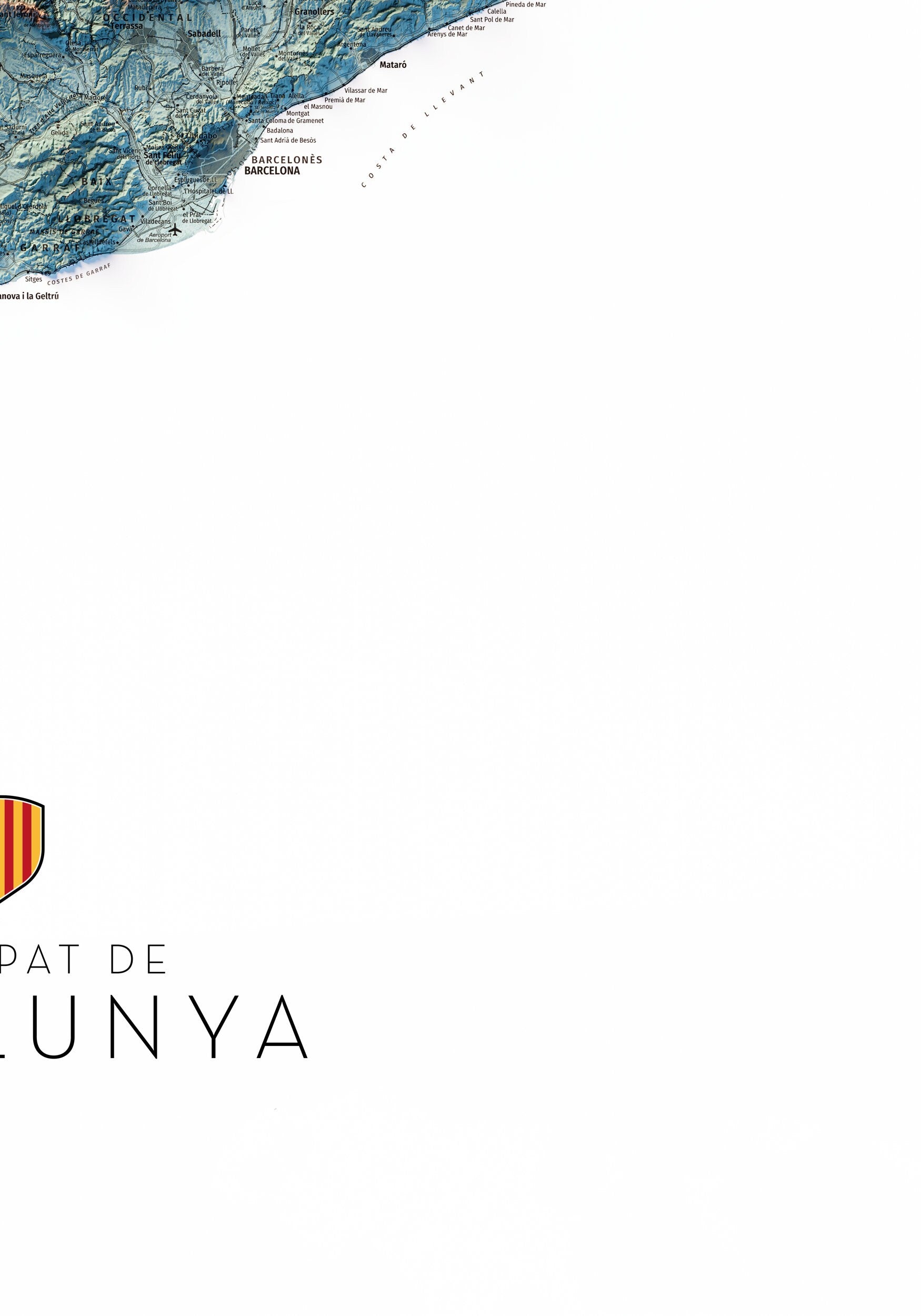 Mapa topográfico artístico de contrastes azul y naranja del Principat de Catalunya.