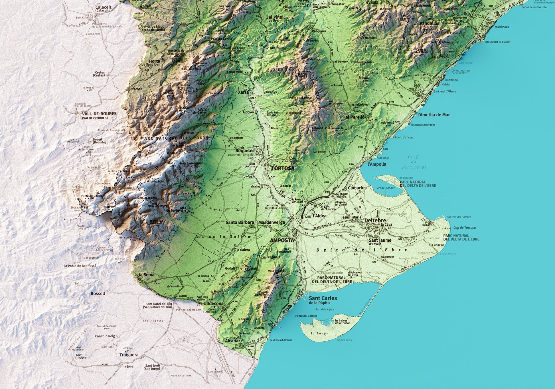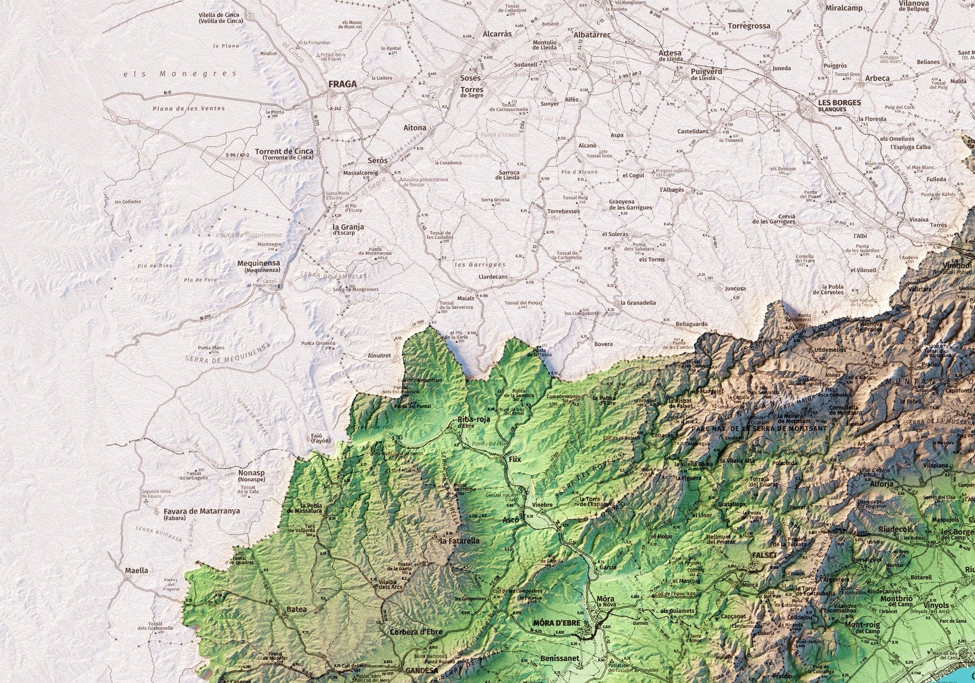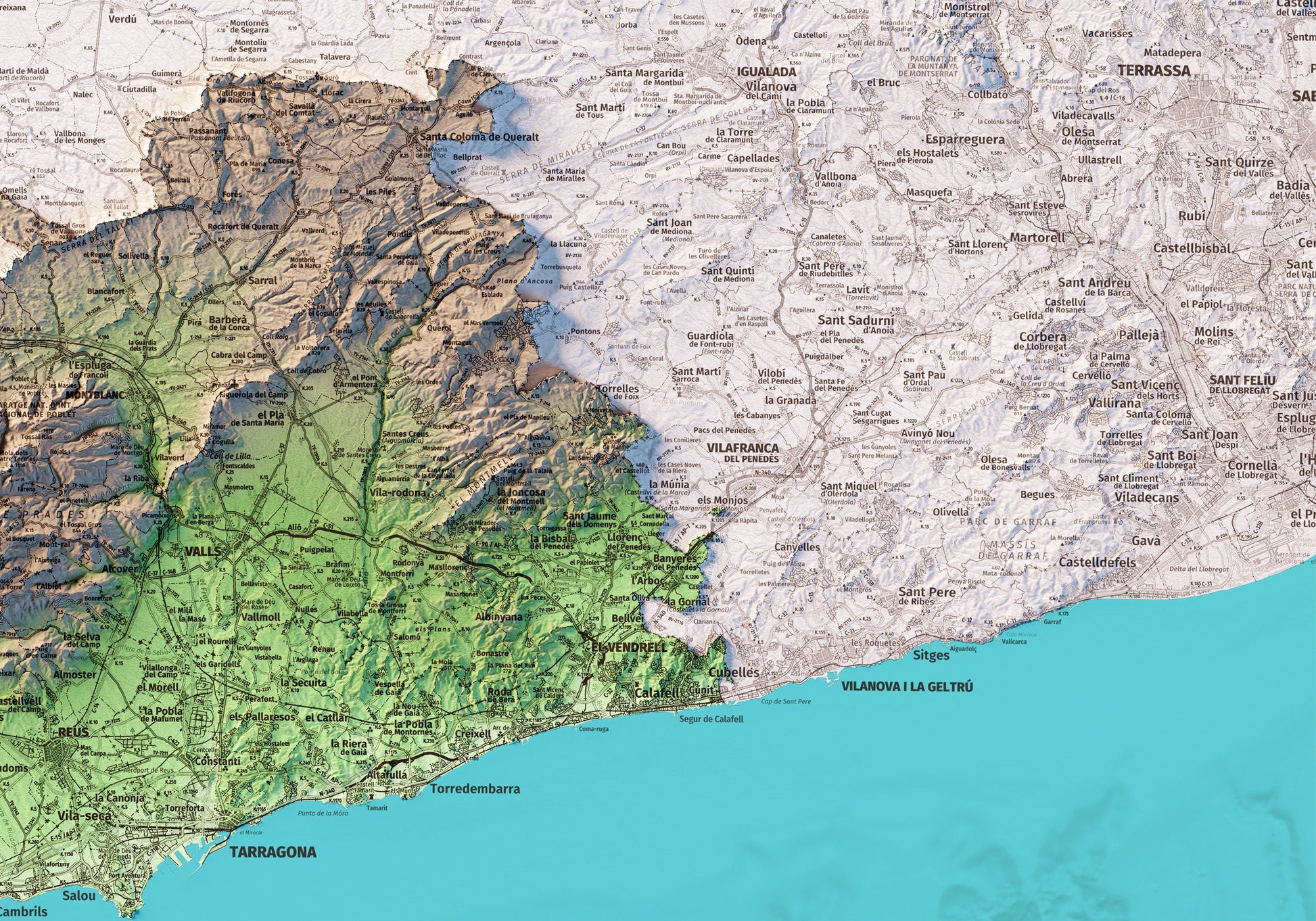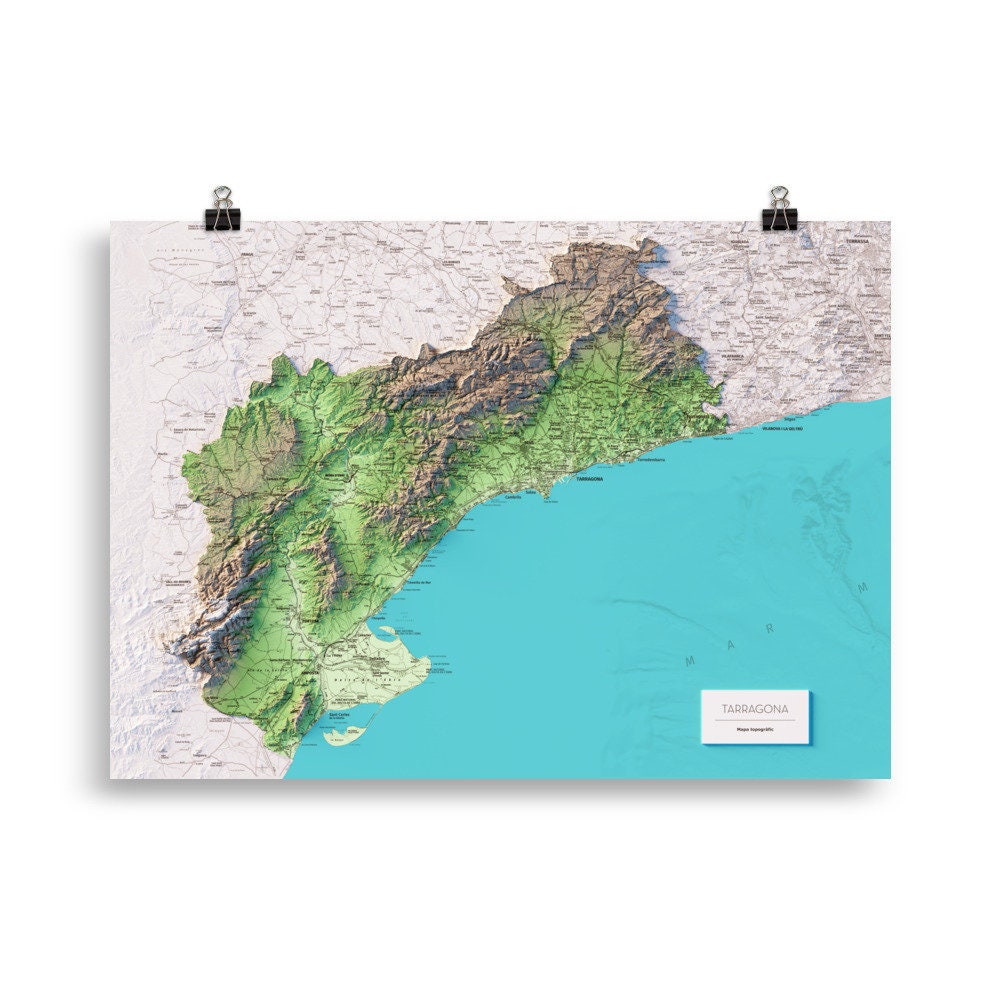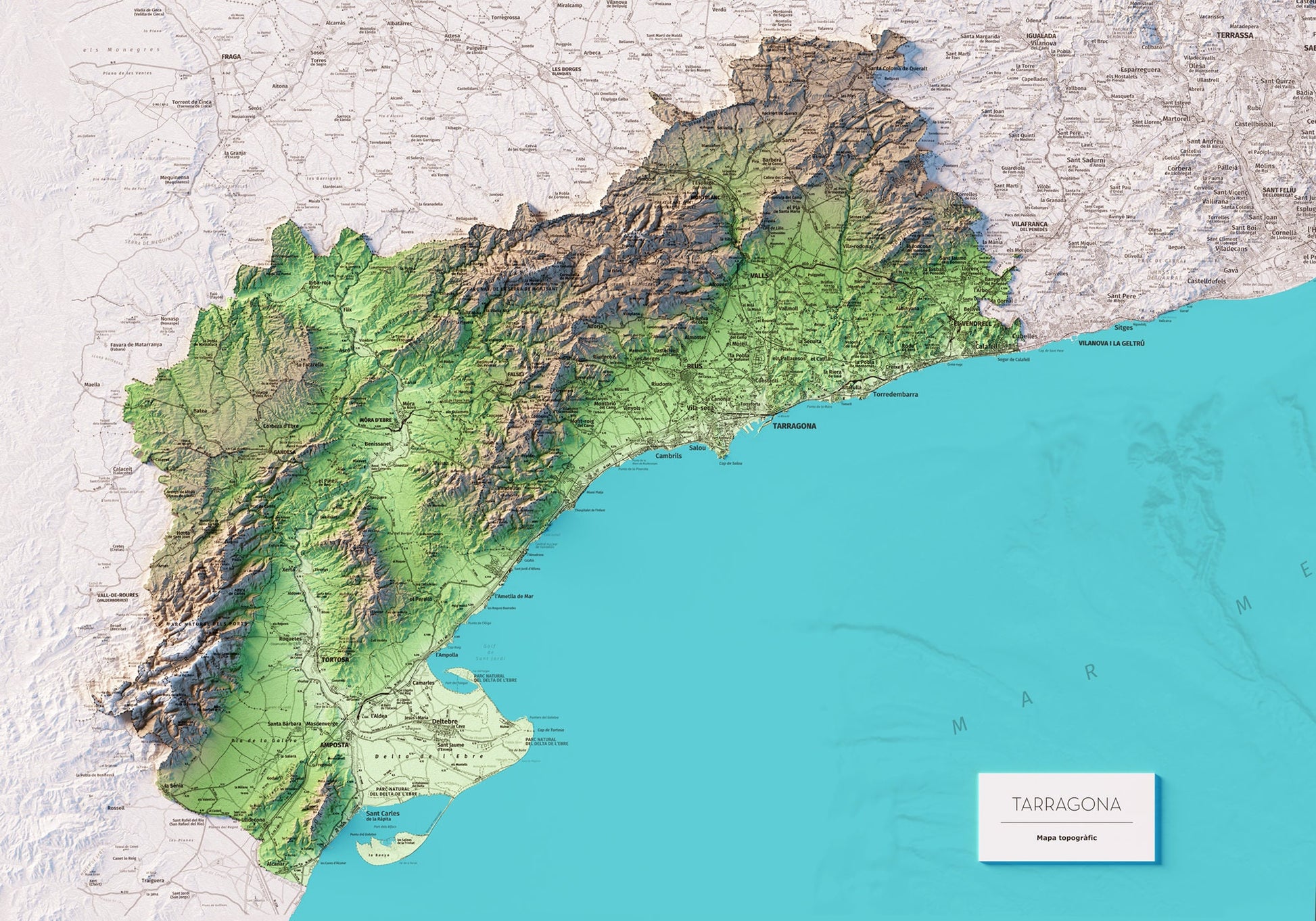 Mapa topográfico en color de la provincia de Tarragona.