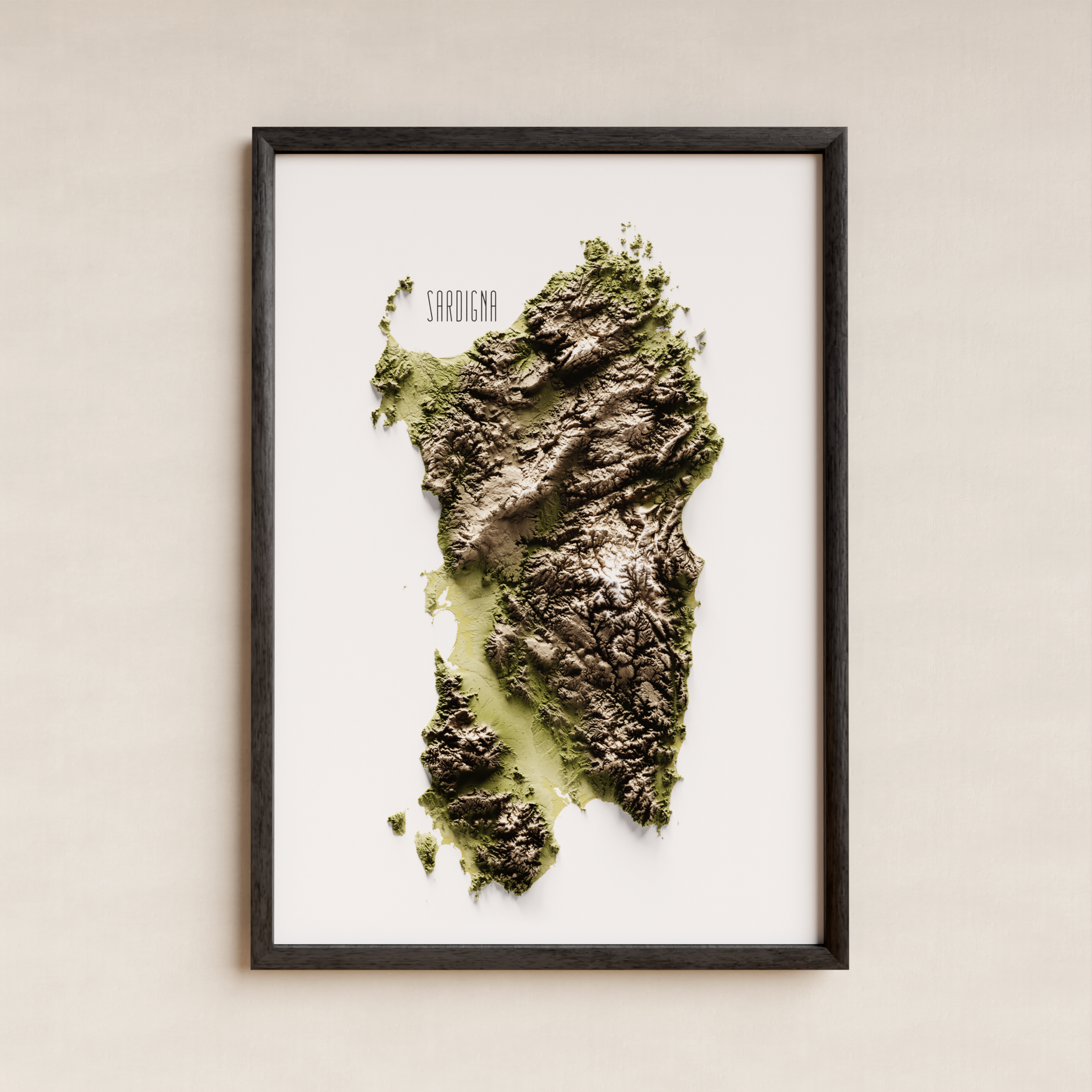 Presentamos la impresión del mapa de alivio de la tierra "Sardegna", una representación visualmente cautivadora y meticulosamente elaborada del encantador paisaje de Sardinia.Diseñado por Trobart Maps, esta impresionante impresión de mapa muestra la topografía única de la isla a través de una mezcla armoniosa de colores terrosos y realistas que evocan la rica belleza natural de la gema mediterránea.El Mar Blanco contrasta perfectamente con los ricos tonos terrestres de la tierra, creando una pieza verdaderamente llamativa de arte cartográfico.