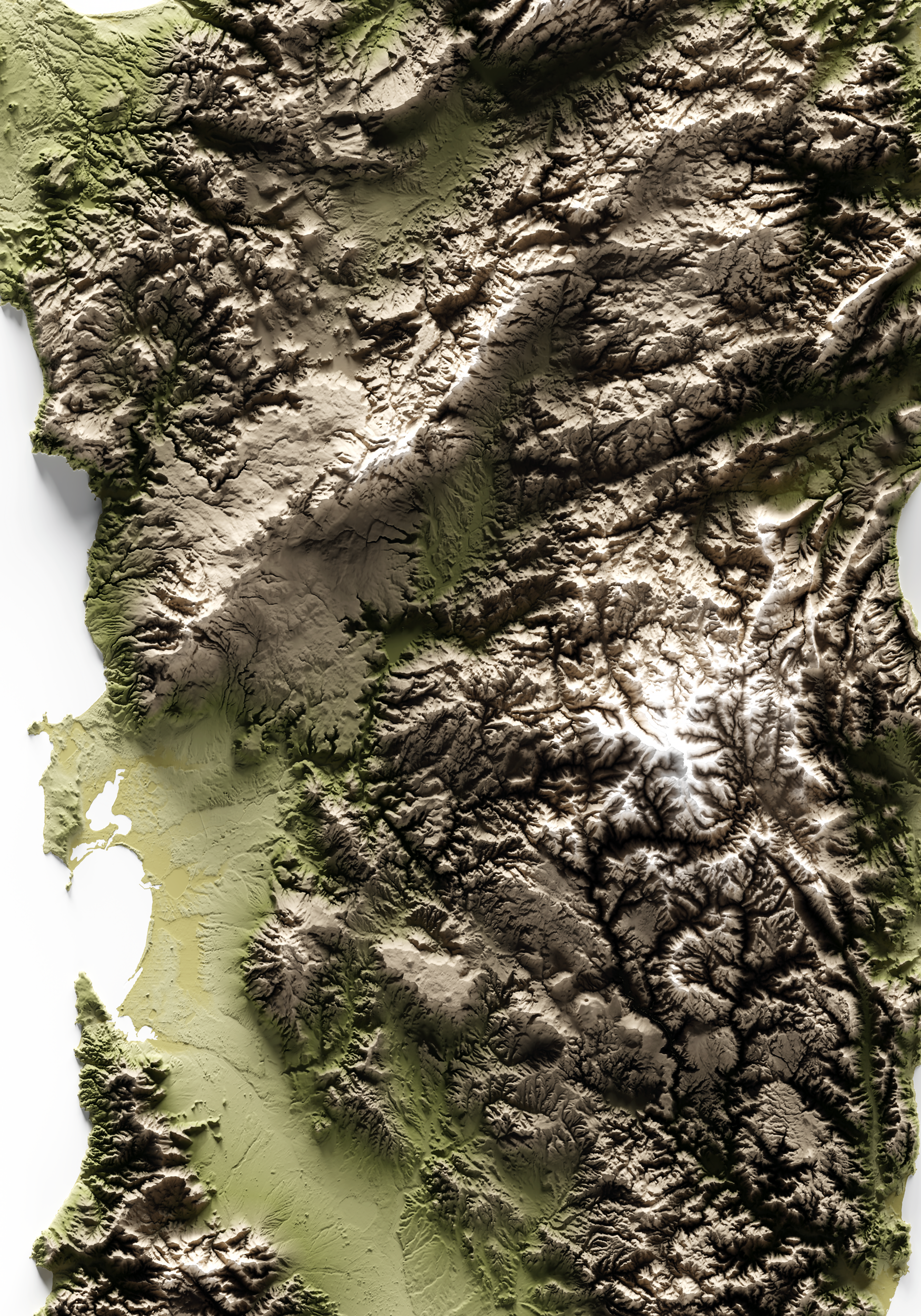 CERDEÑA. Mapa de relieve en colores terrosos.
