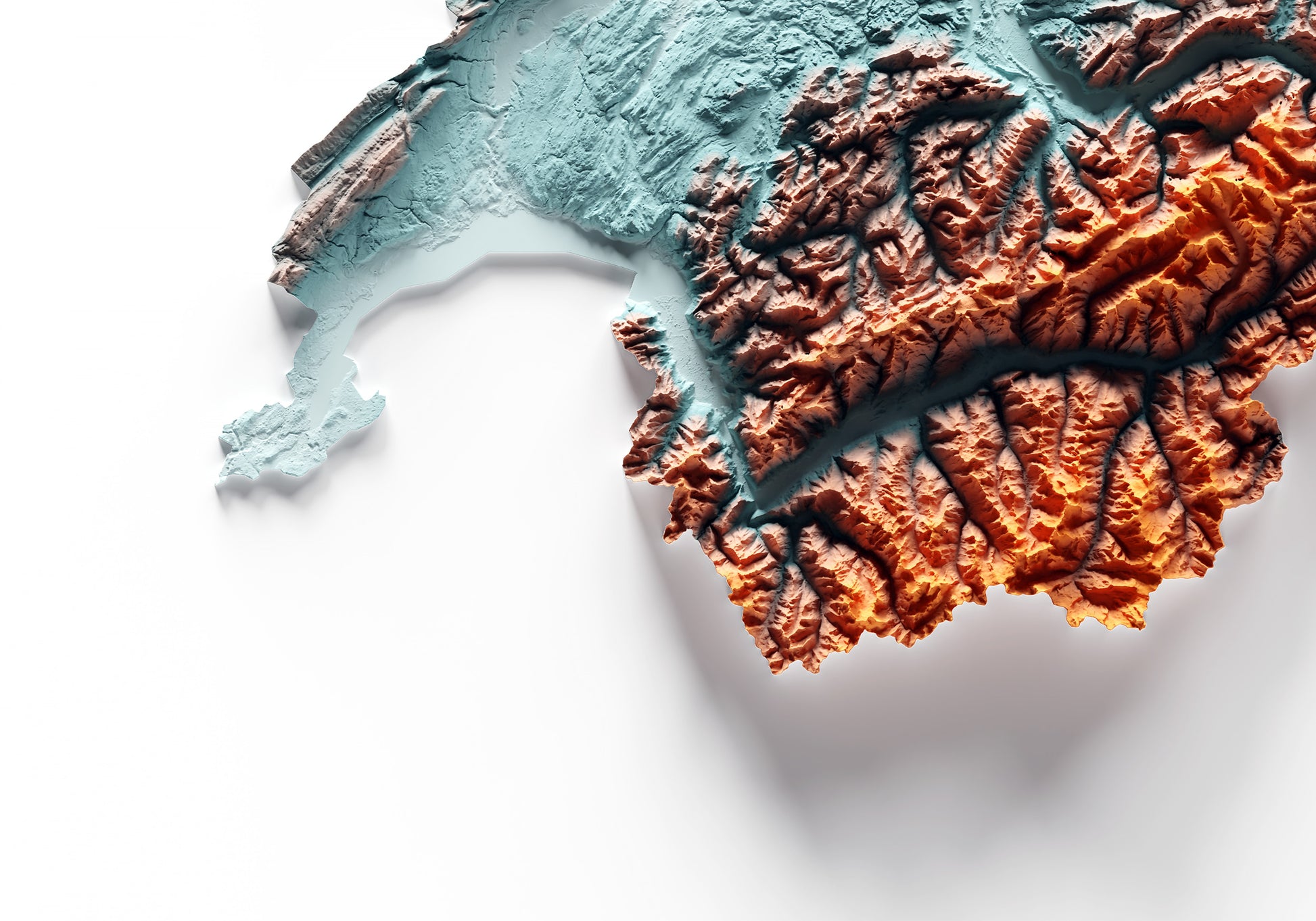SUIZA. Mapa de relieve con contraste.