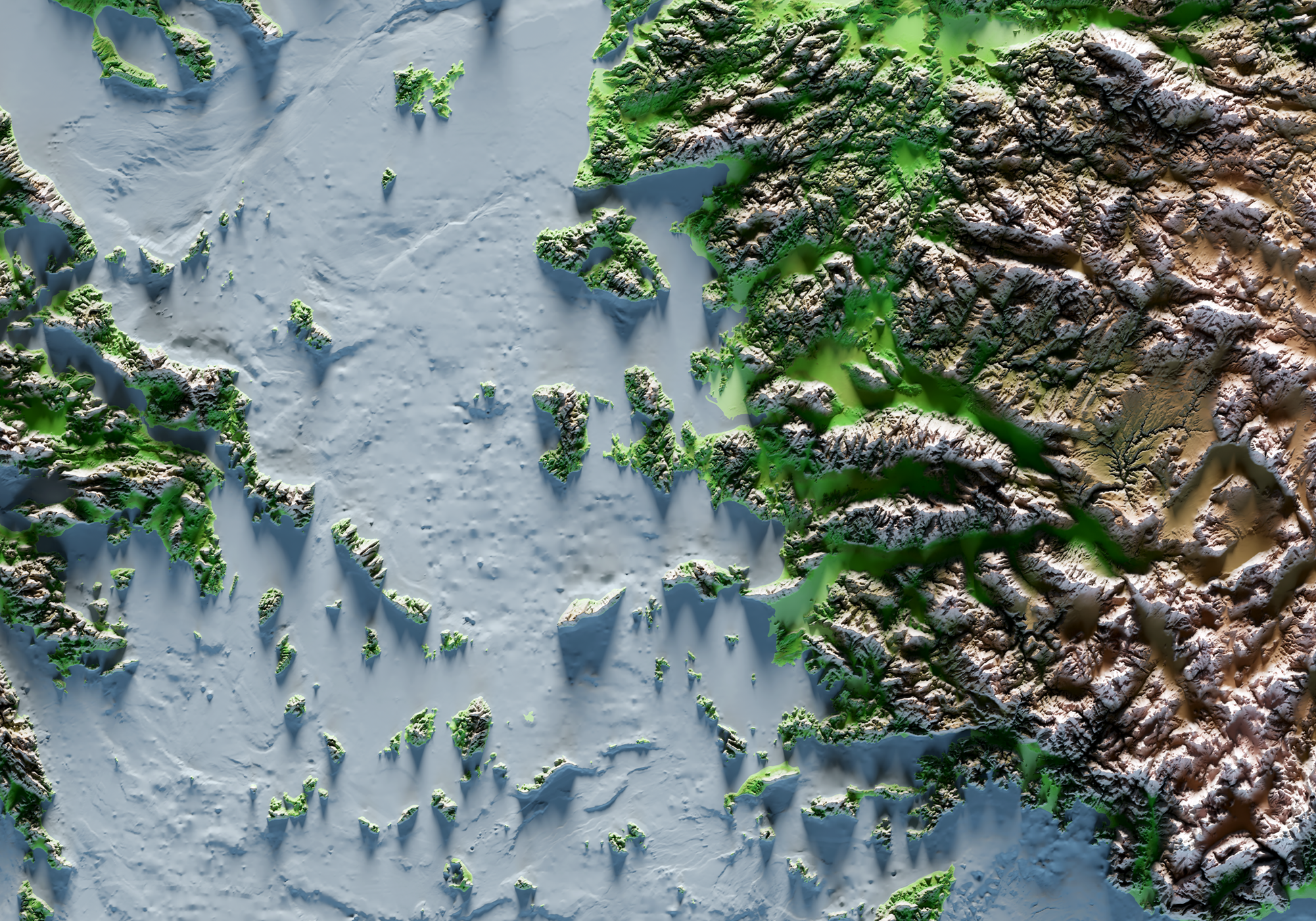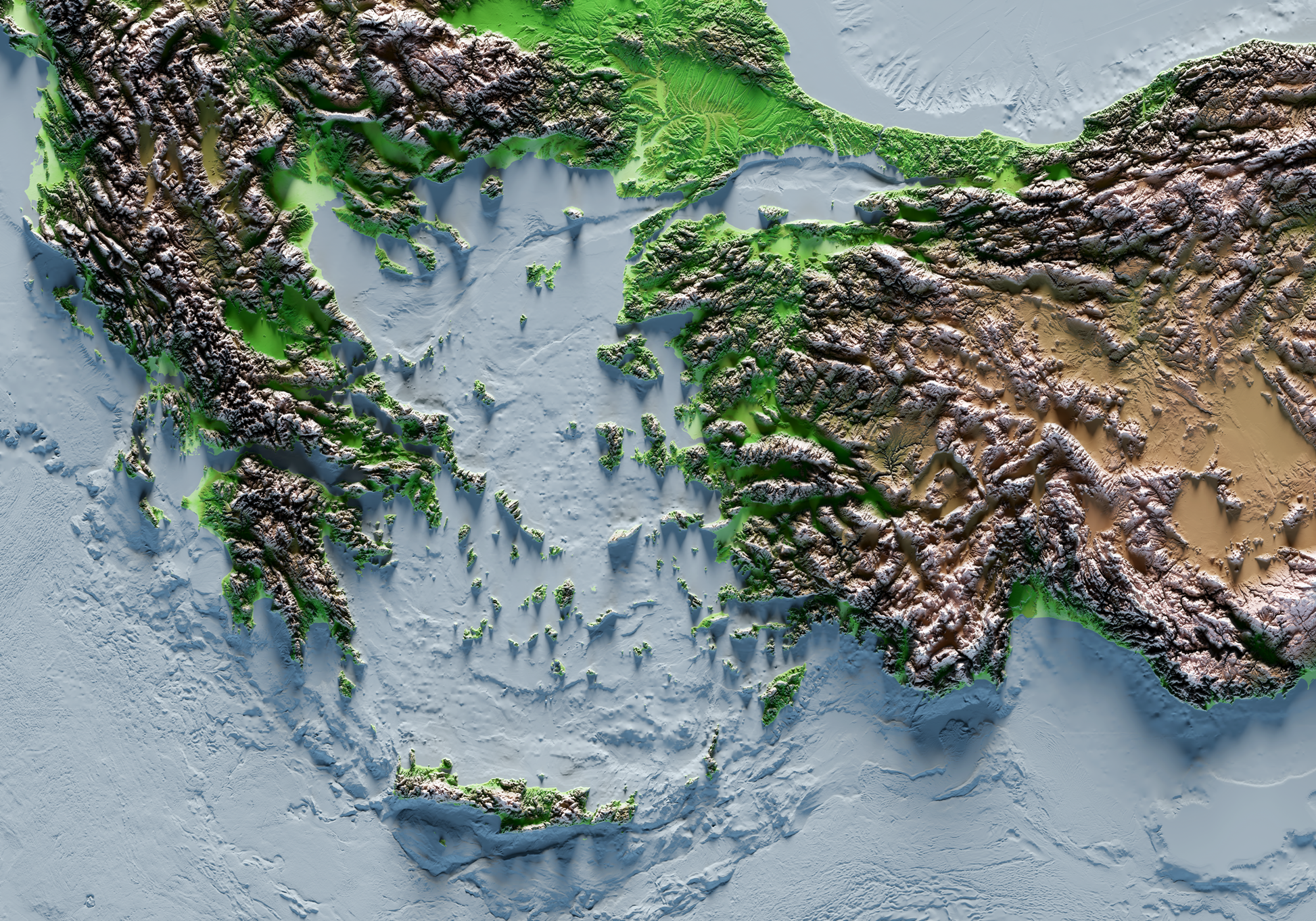 REGIÓN DEL MAR EGEO. Classic reief map print with bathymetry. Blue sea version.
