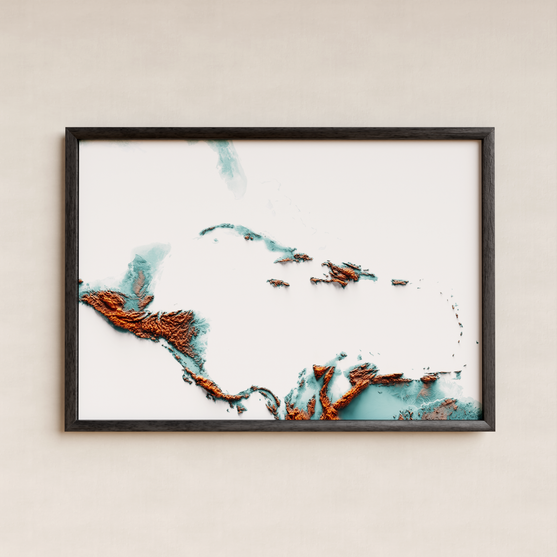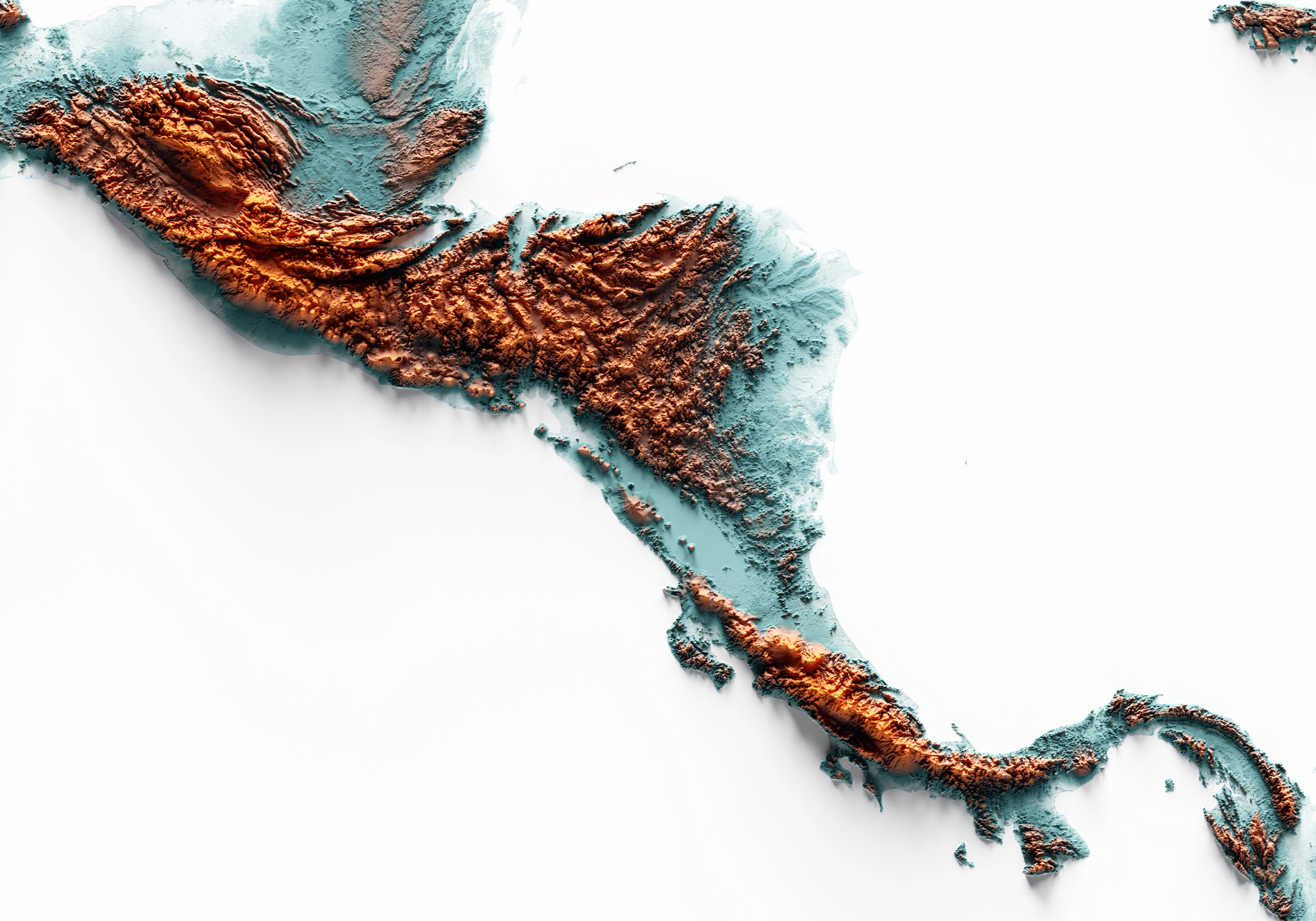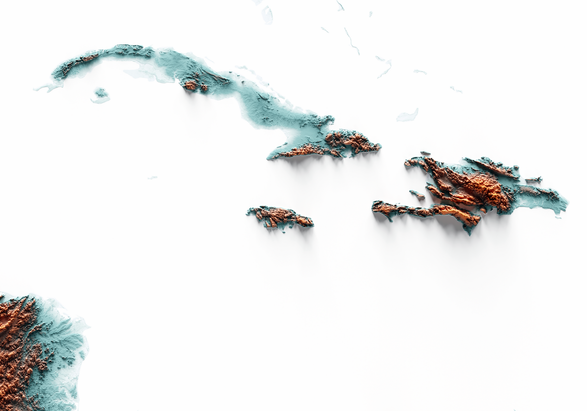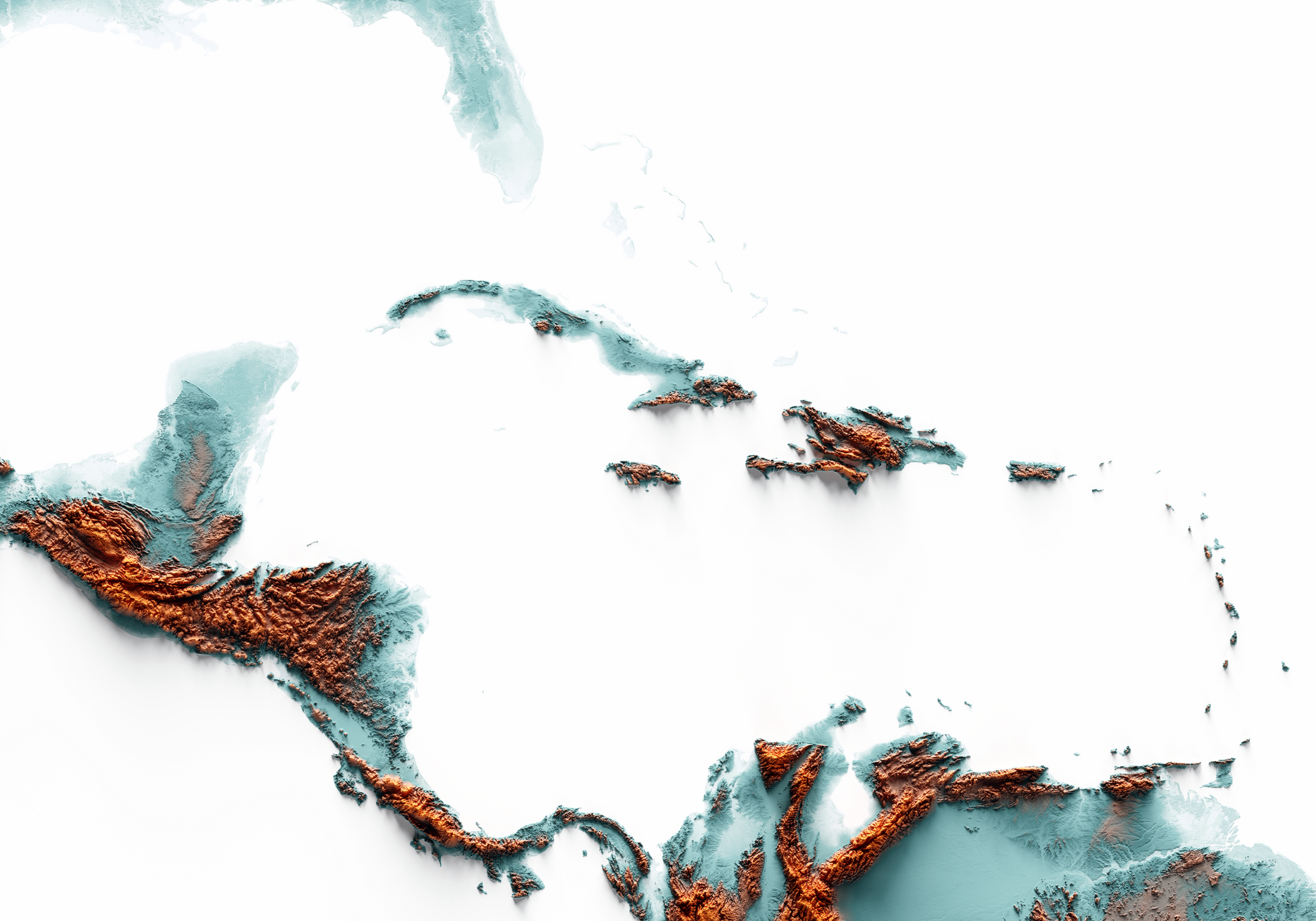 CARIBBEAN. Mapa de relieve con contraste.