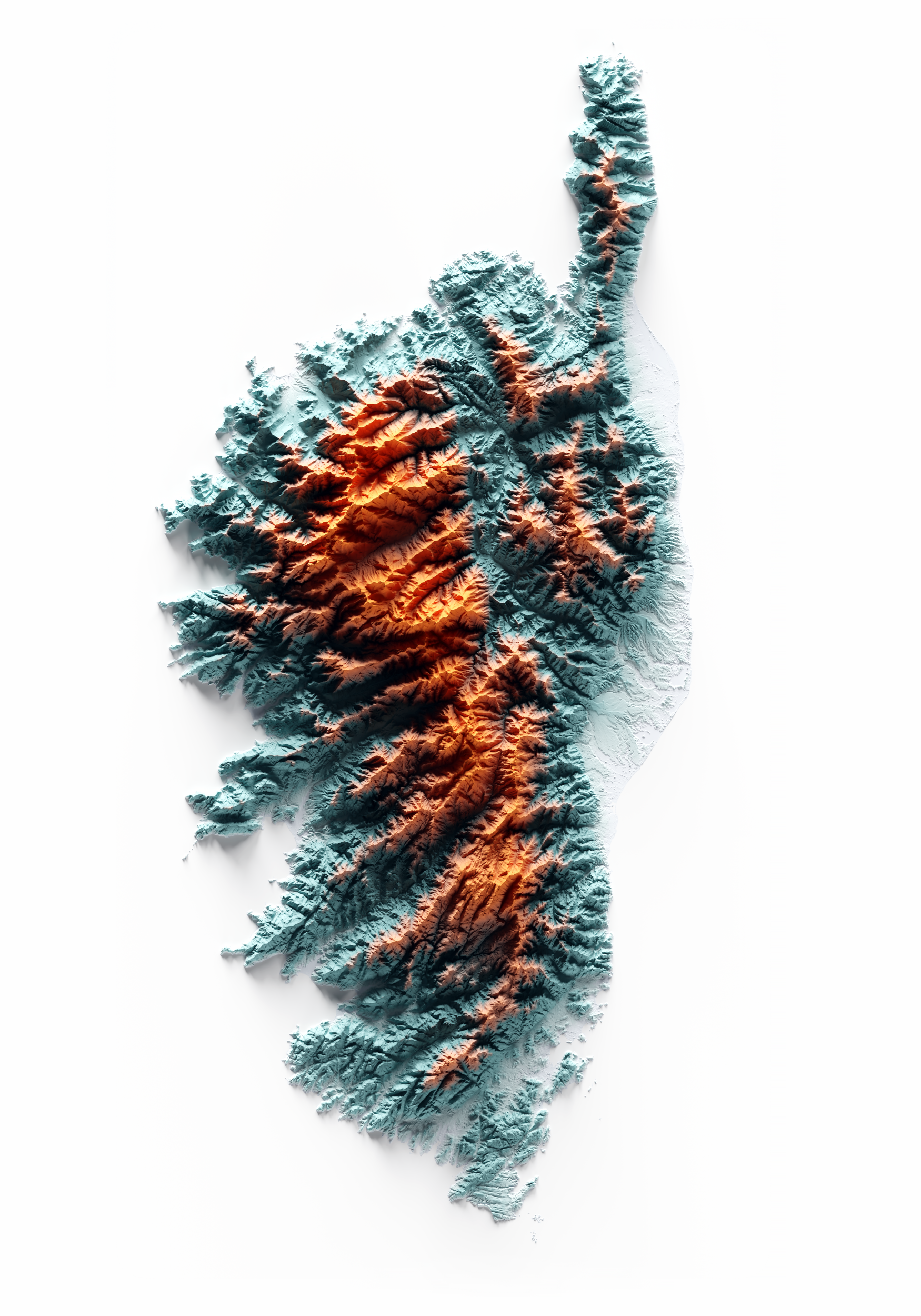 Sumérgete en la geografía deslumbrante de Córcega, atravesando sus montañas escarpadas, bosques expansivos y costas tranquilas.Desde los picos de Monte Cinto hasta las playas de arena que se extienden a lo largo del perímetro de la isla, el mapa de contraste Córcega ofrece una celebración audaz y vibrante de la belleza natural cruda de la región y el encanto convincente.