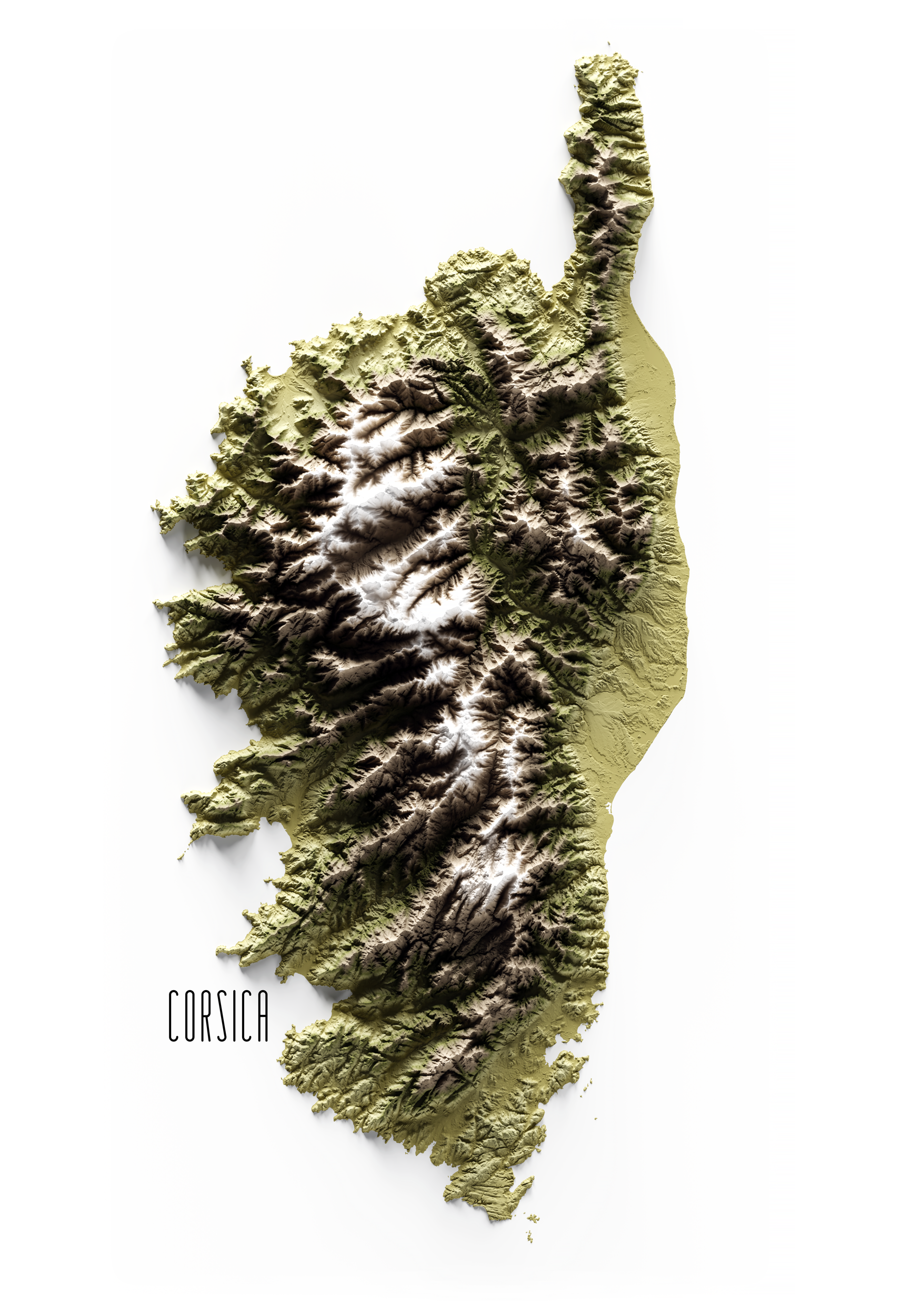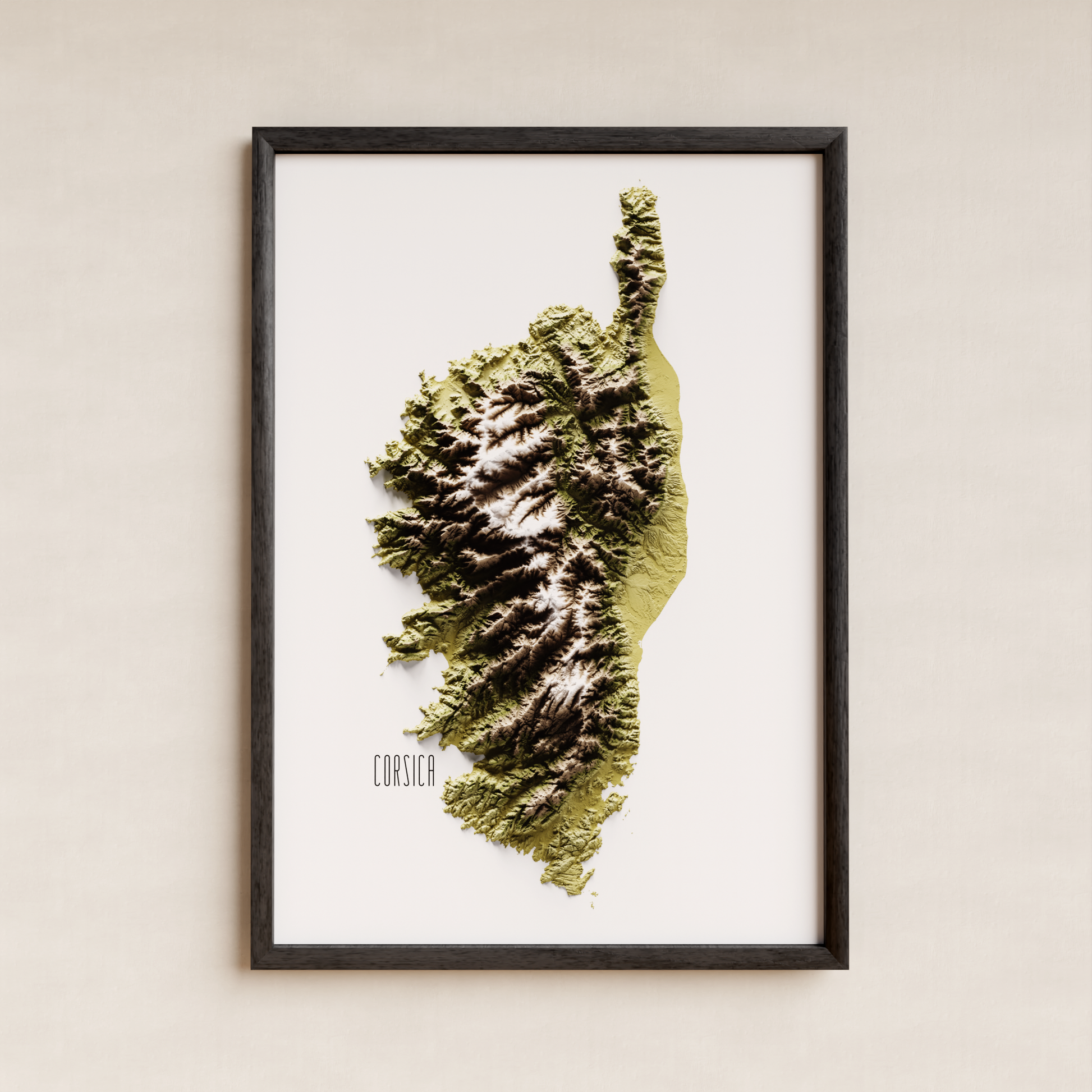 Explore la impresionante geografía de Córcega a través del mapa terrestre.Desde las altas altitudes de Monte Cinto hasta las playas pacíficas que salpican su perímetro, el mapa invita a una mirada más cercana al paisaje y la riqueza cultural de la isla.El mapa de Córcica de colores terrosos es un testimonio auténtico del extraordinario encanto y la belleza cautivadora de esta isla.