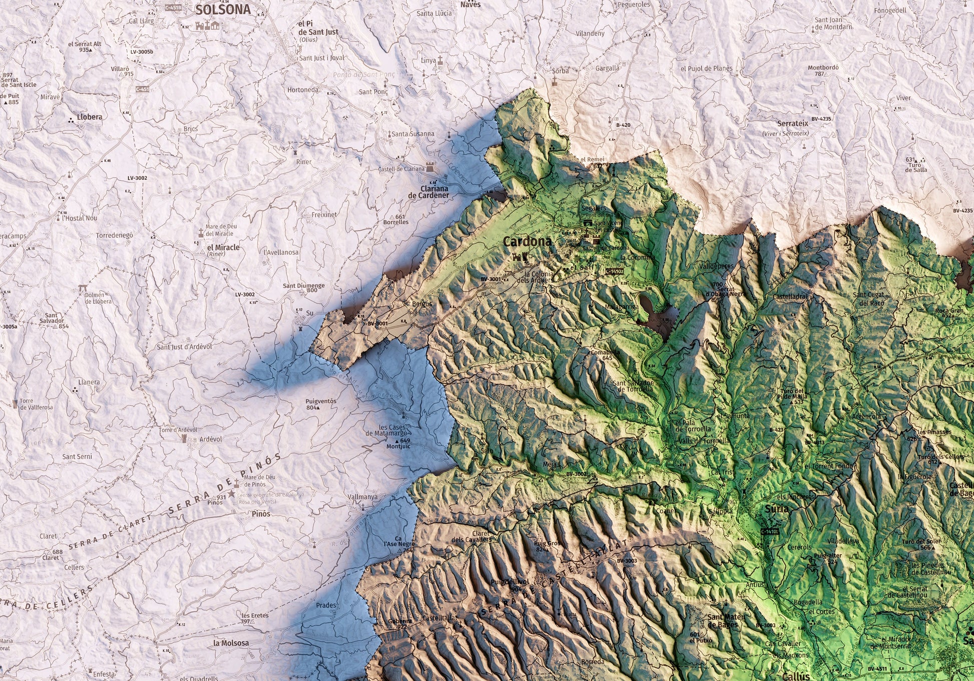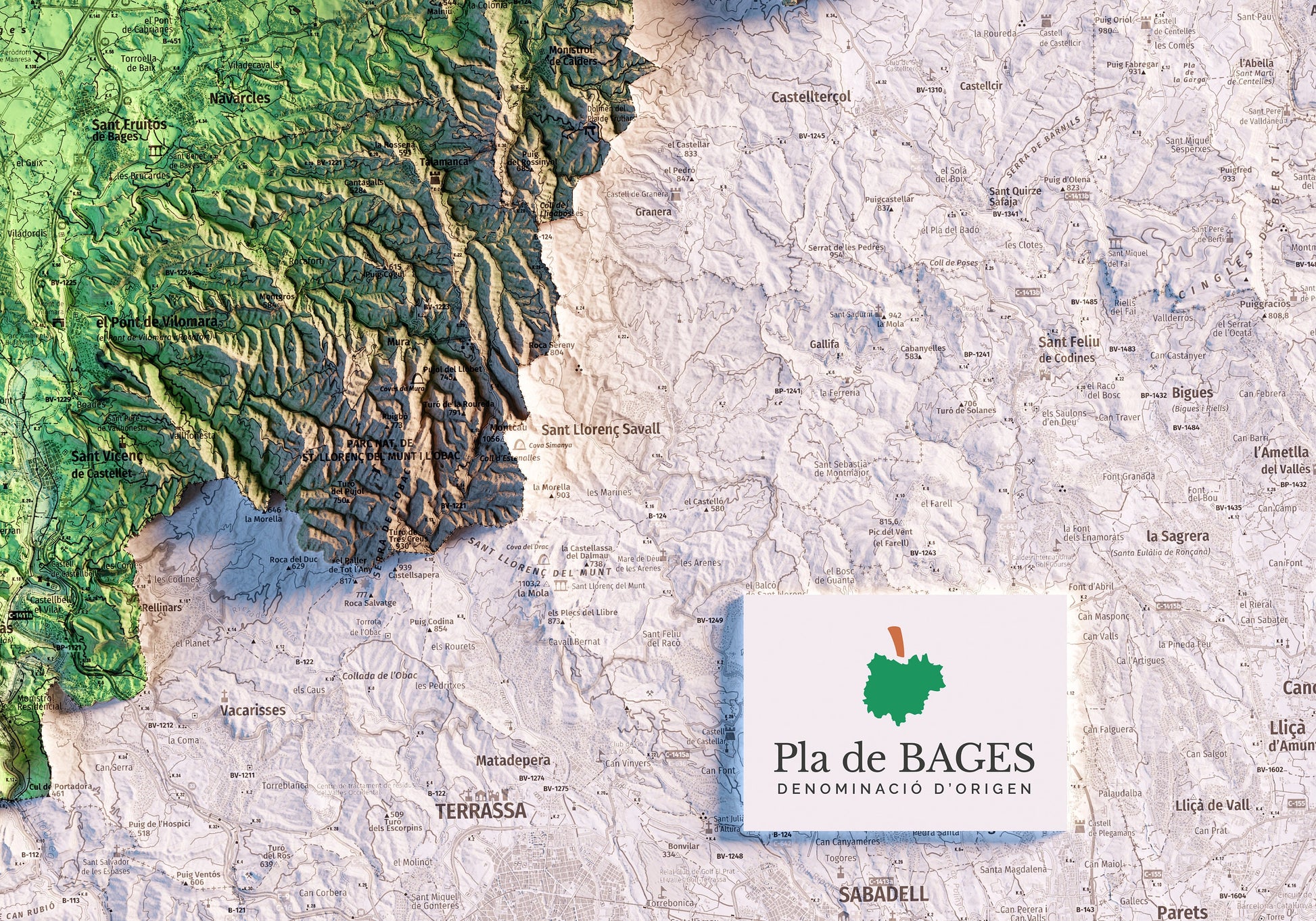 Mapa topográfico en color de la denominación de orígen Pla de Bages.