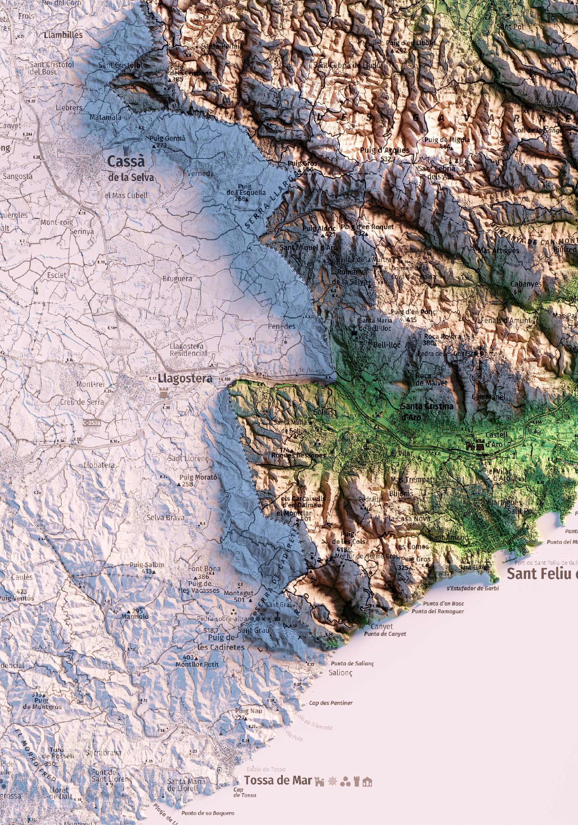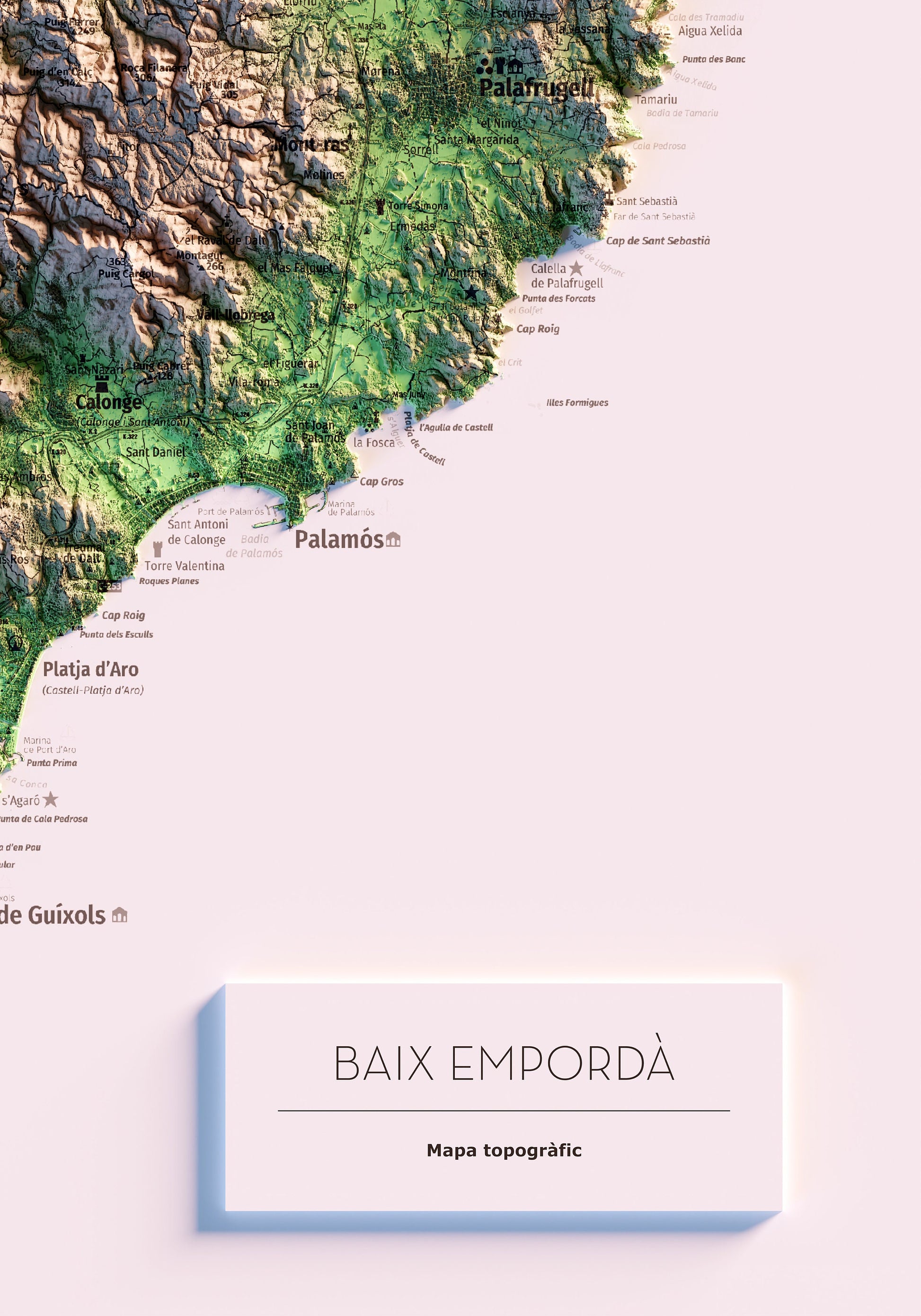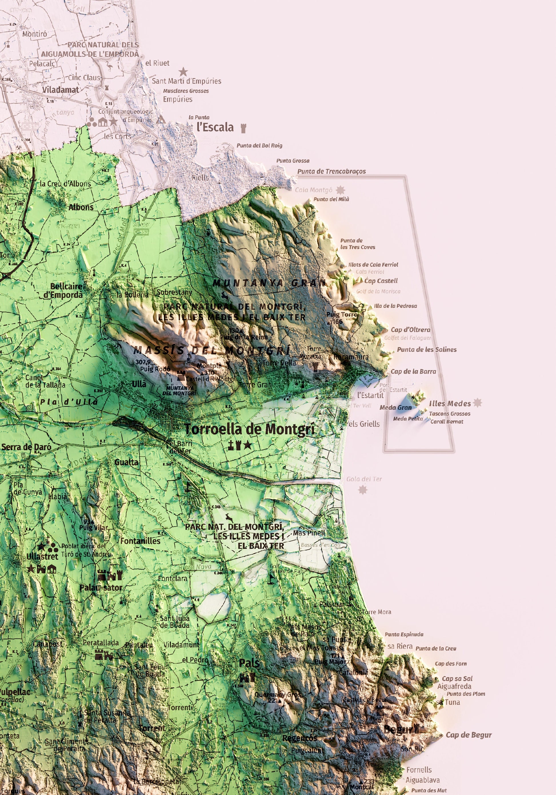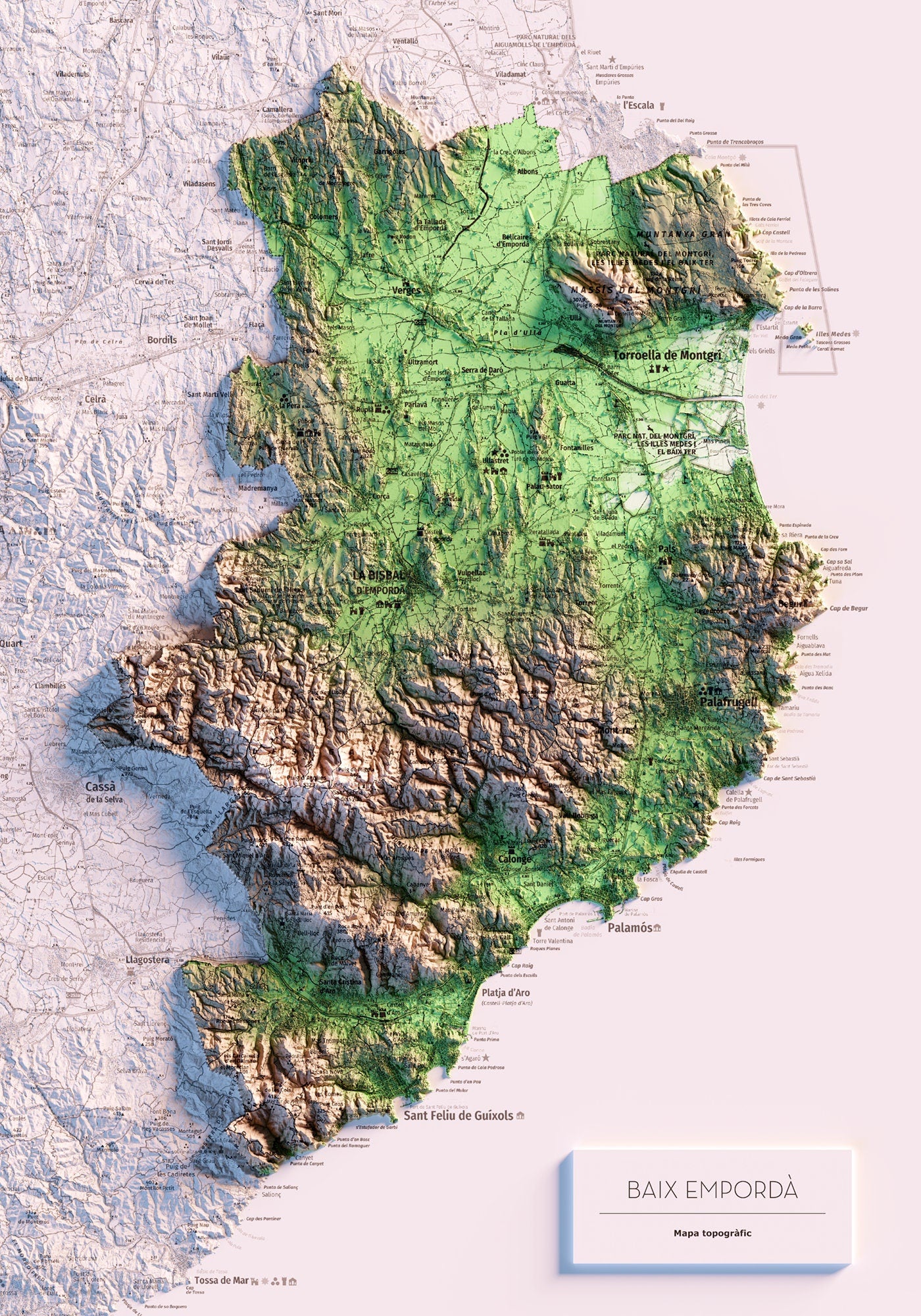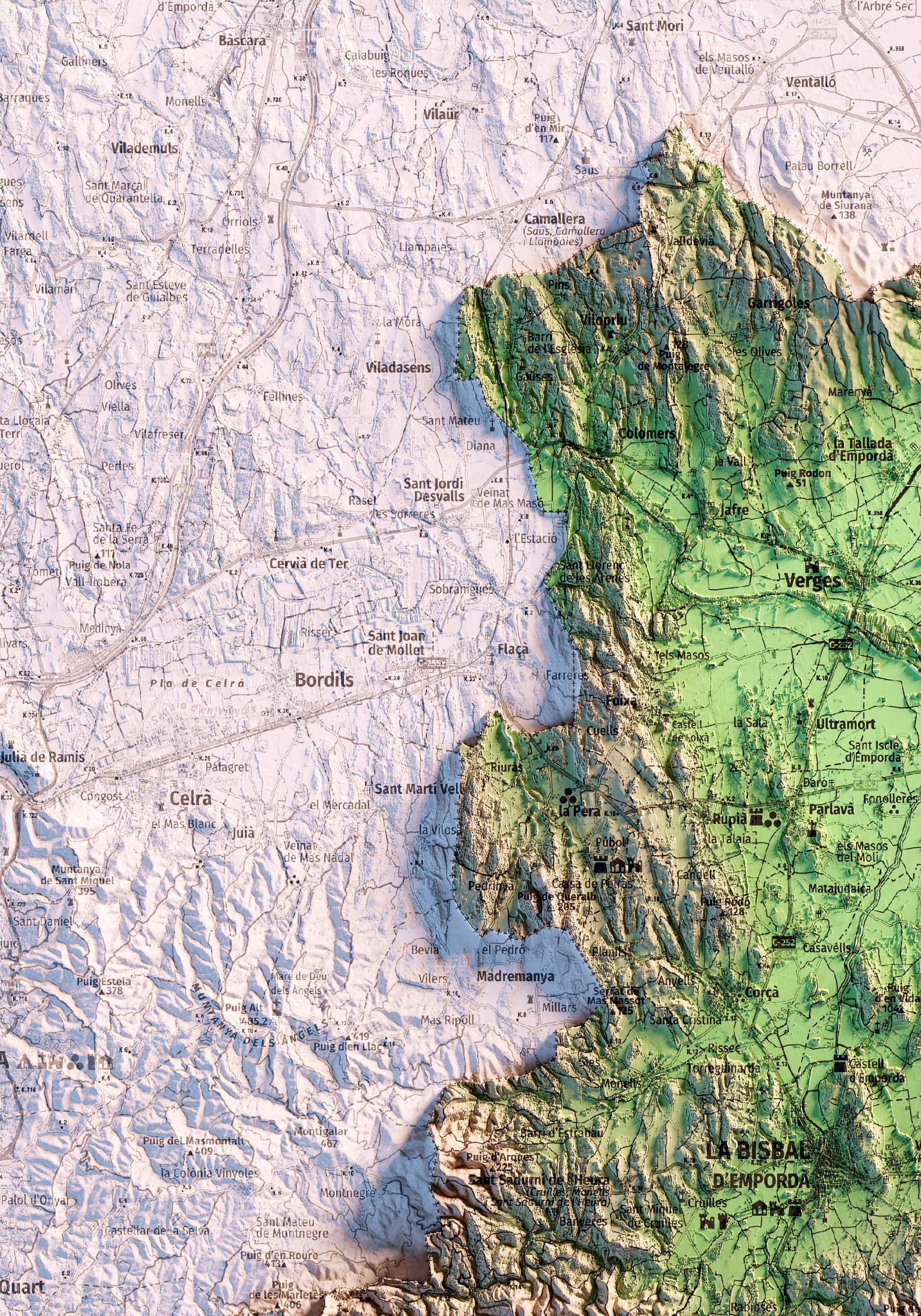 Mapa topográfico en color del Baix Empordà.