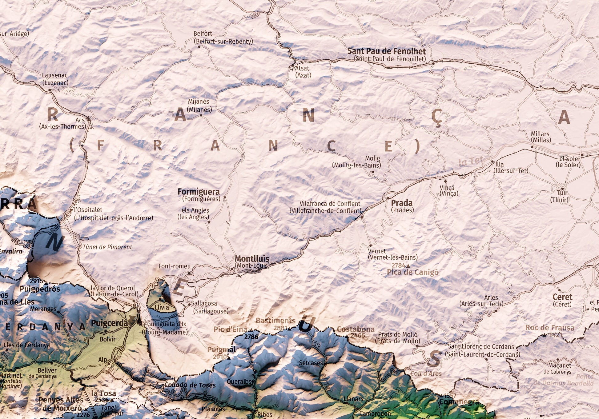 EL PIRINEU CATALÀ I ANDORRA. Mapa topográfico.