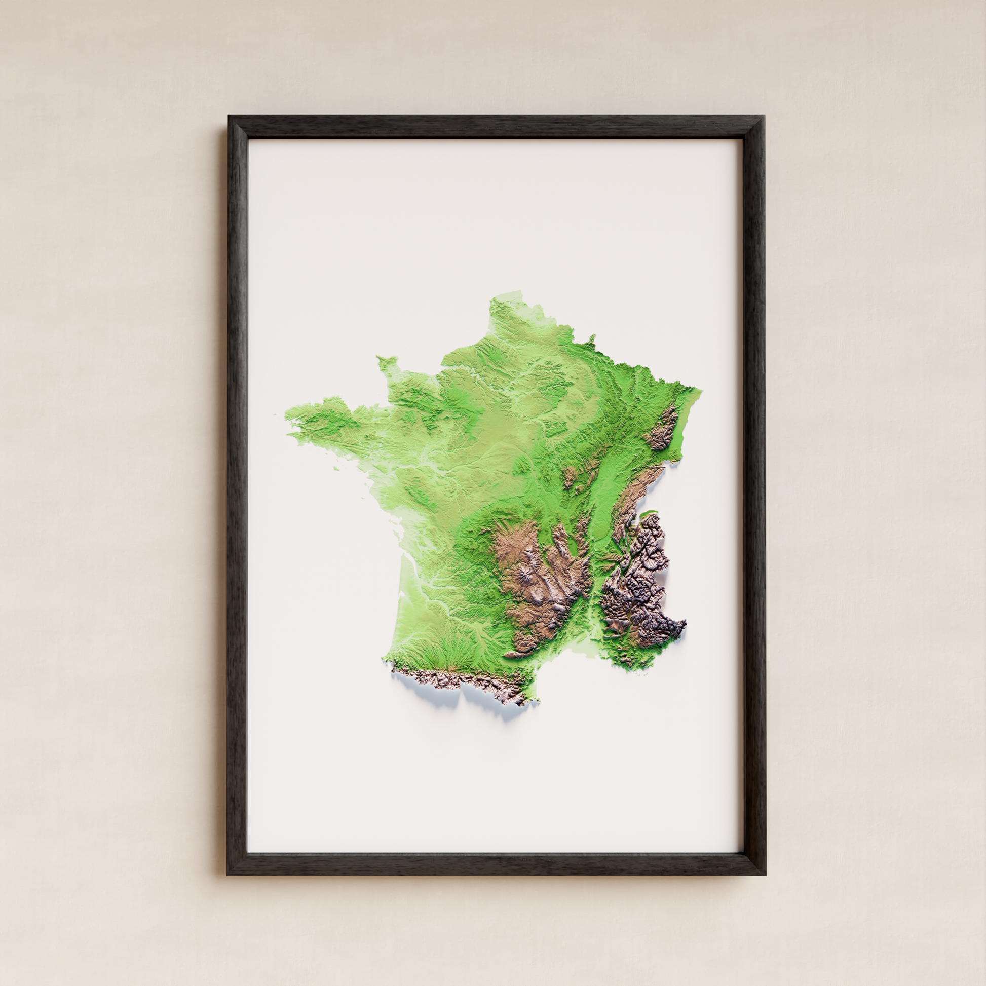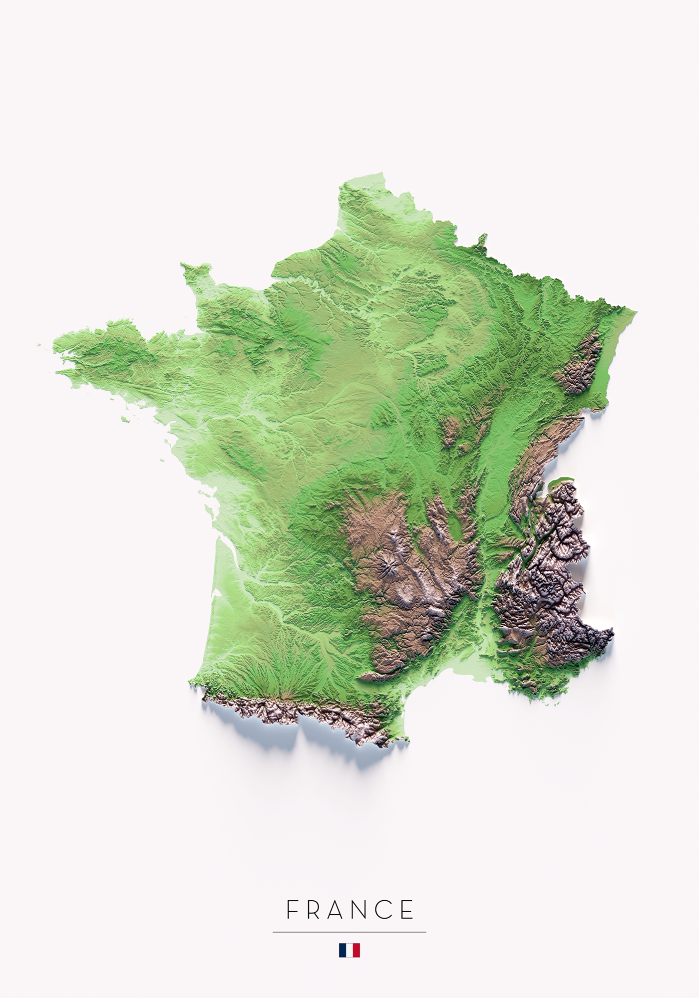 FRANCIA. Mapa de relieve clásico.