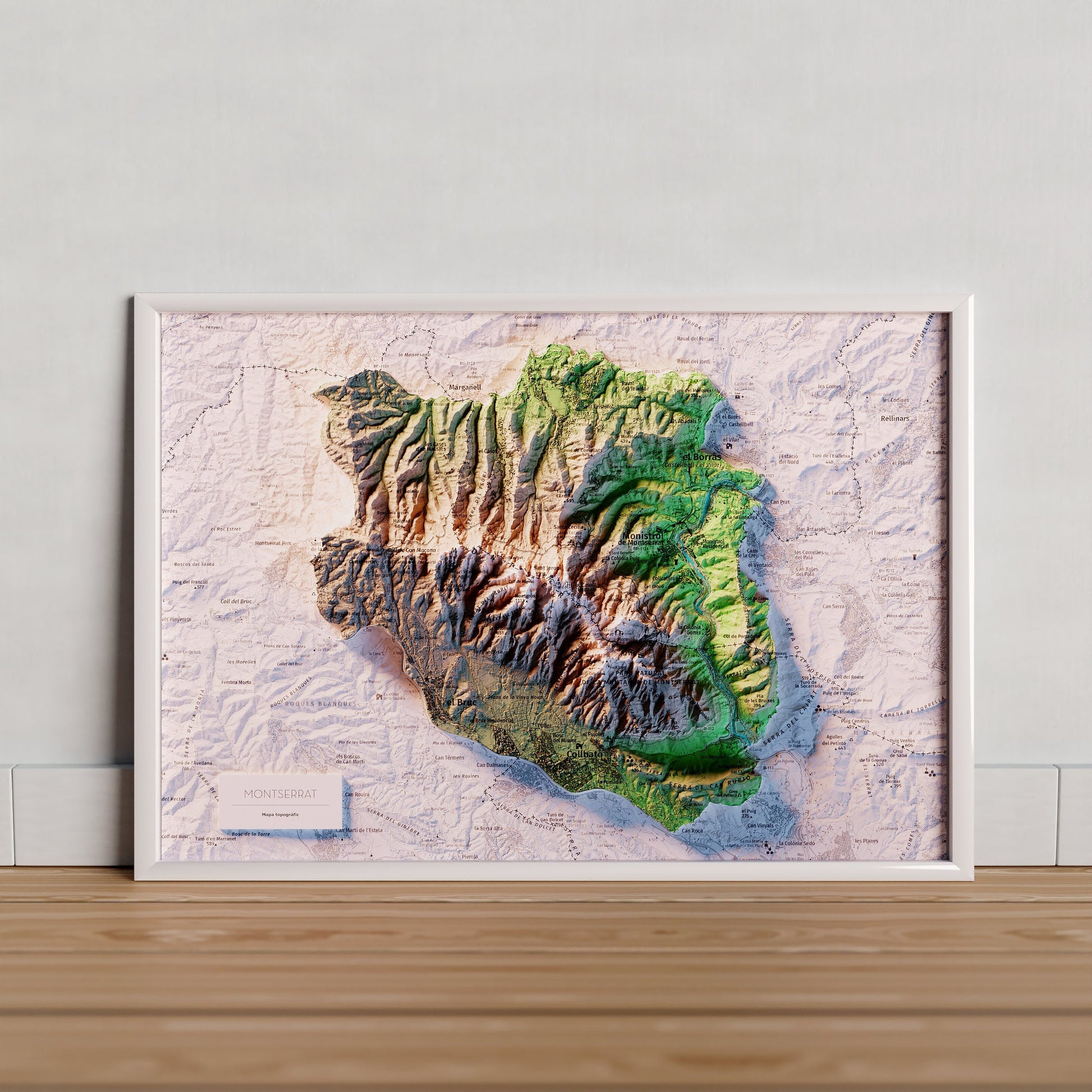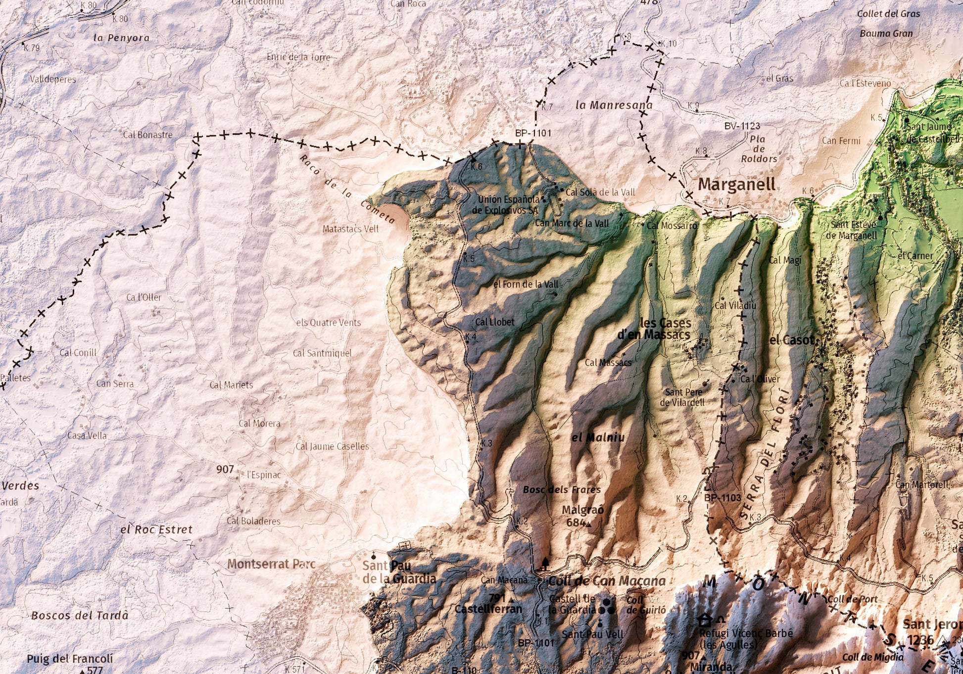Mapa topográfico en color de Montserrat.
