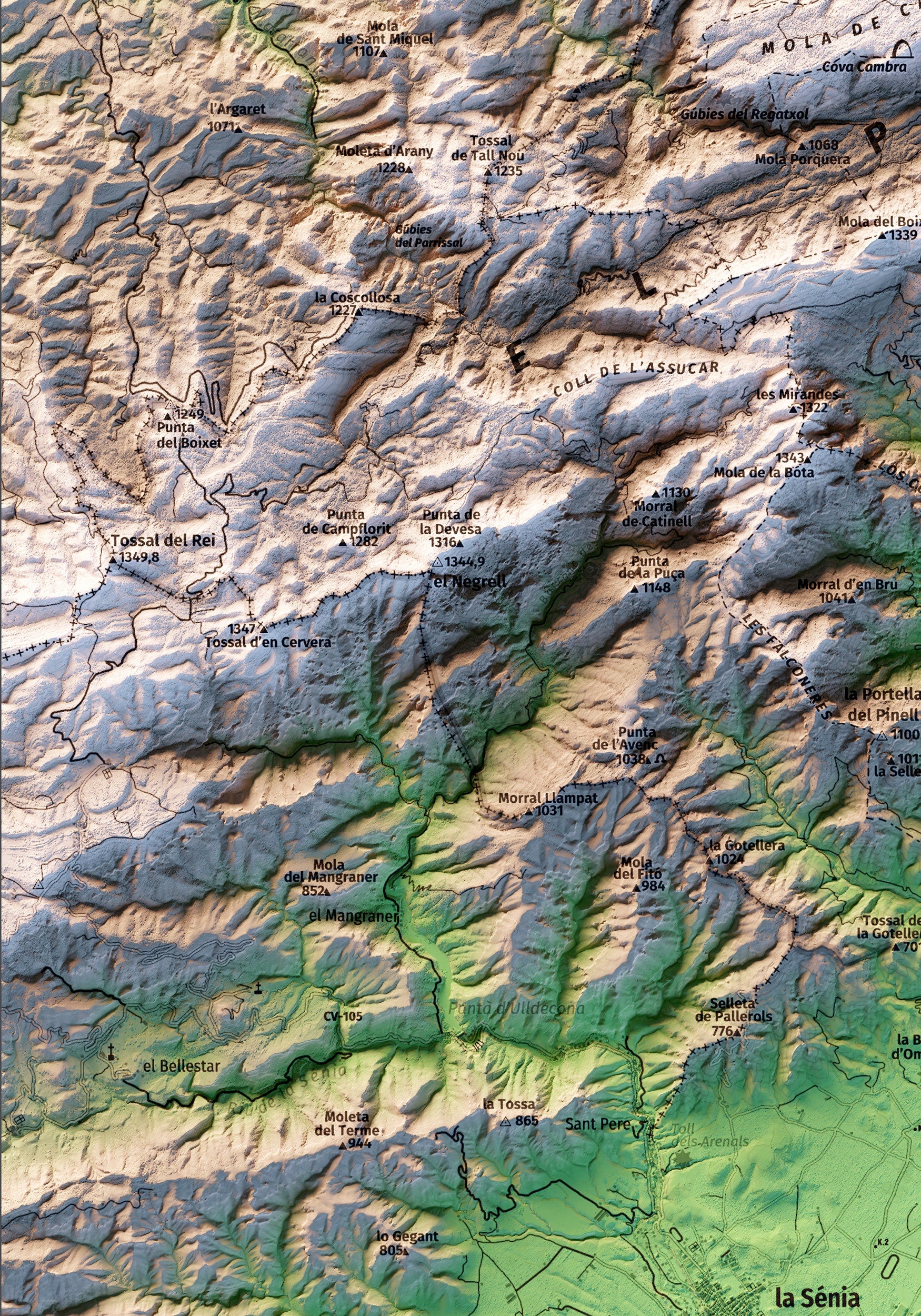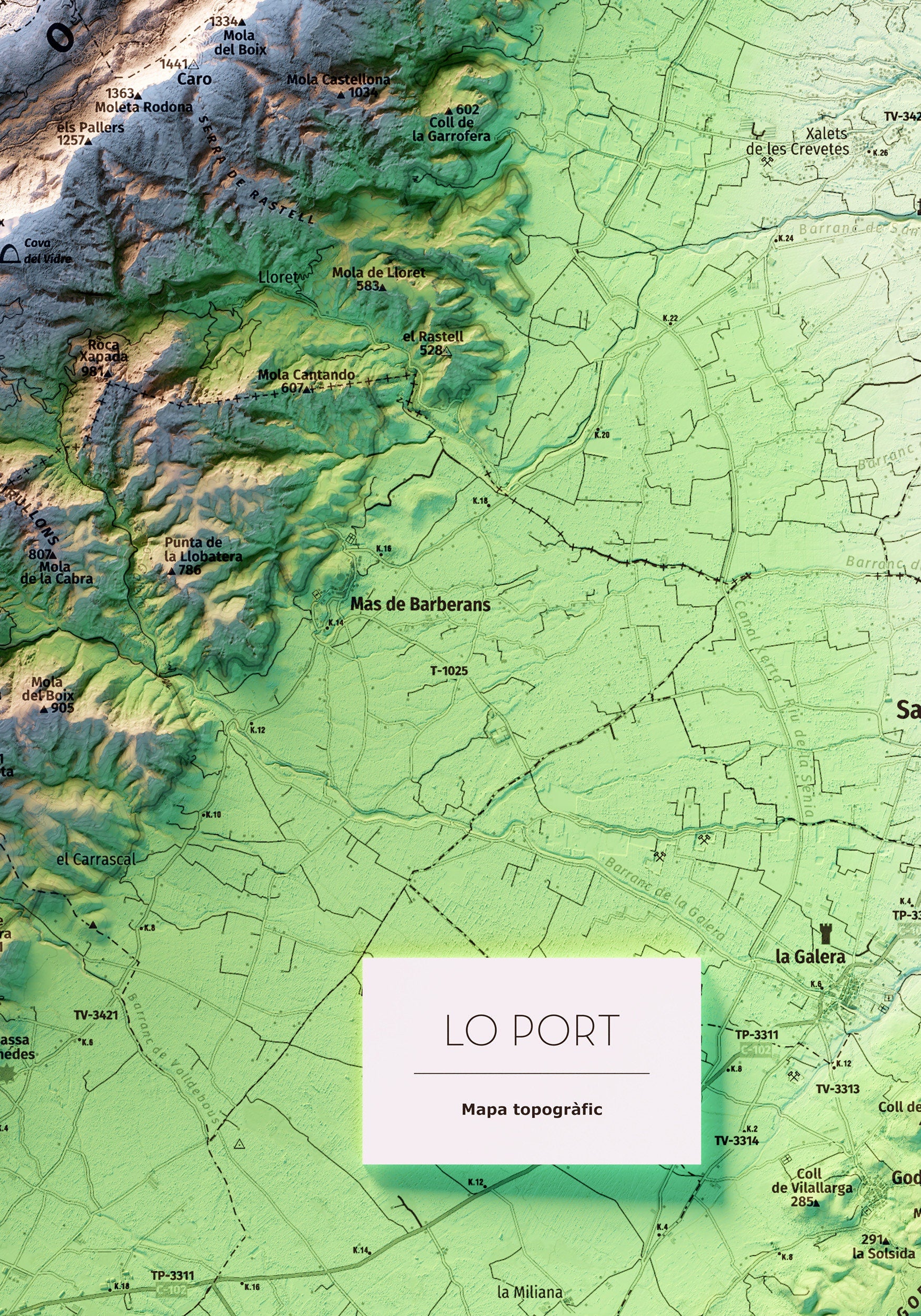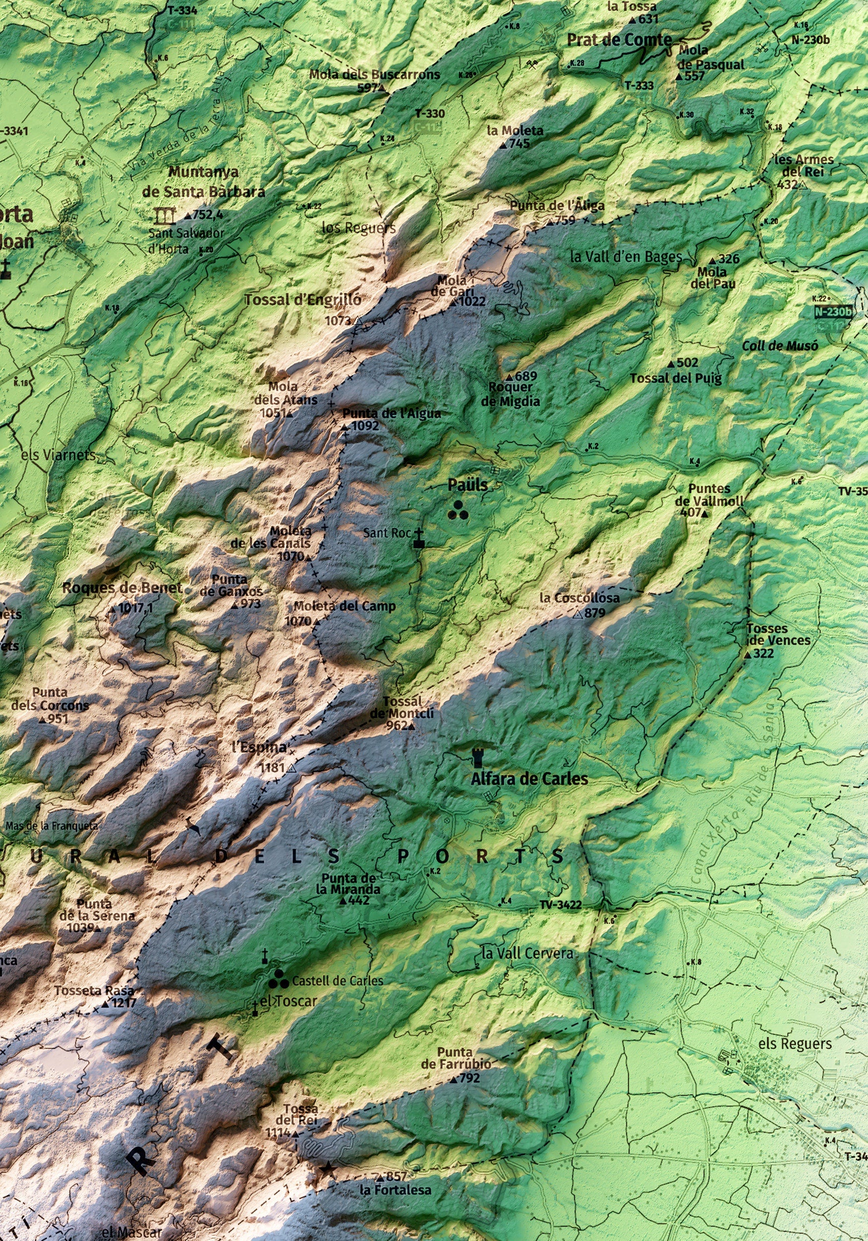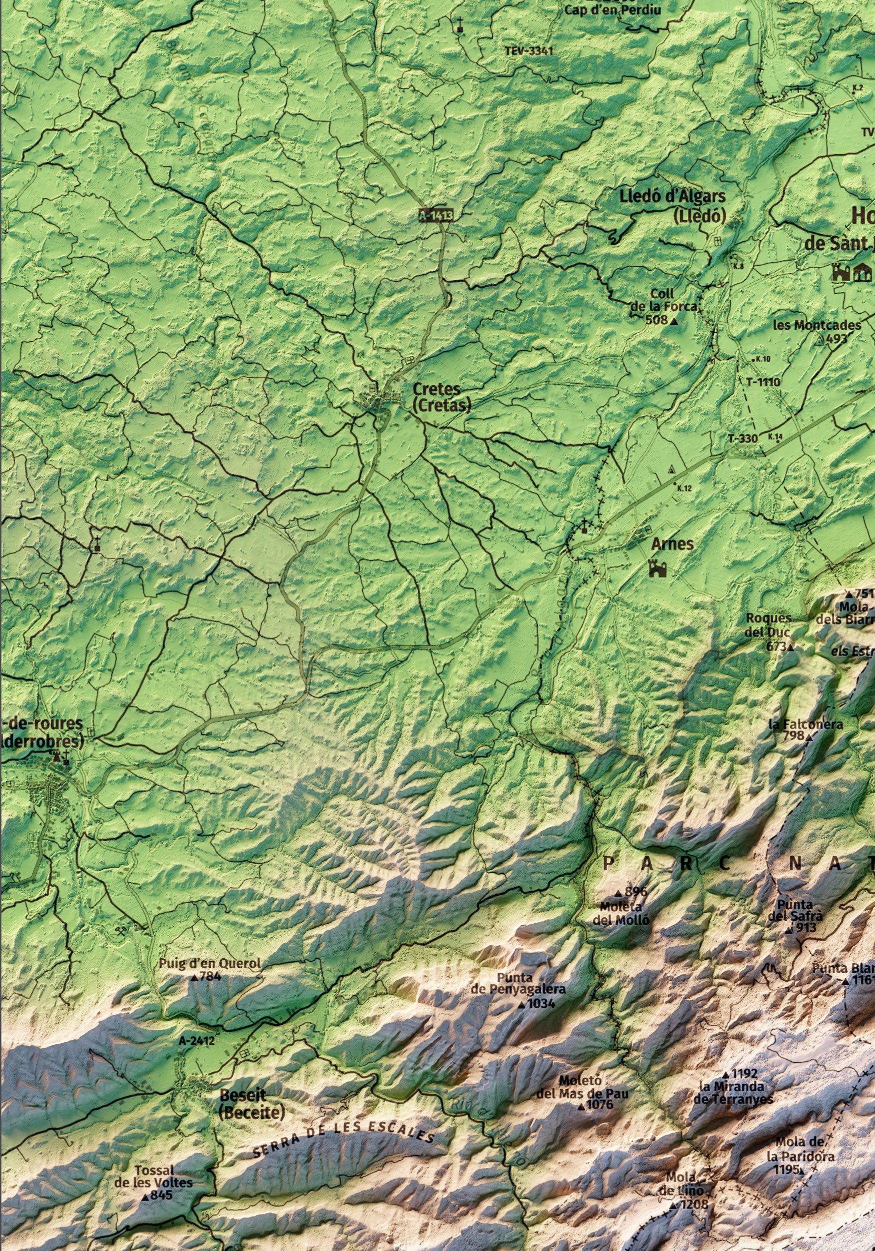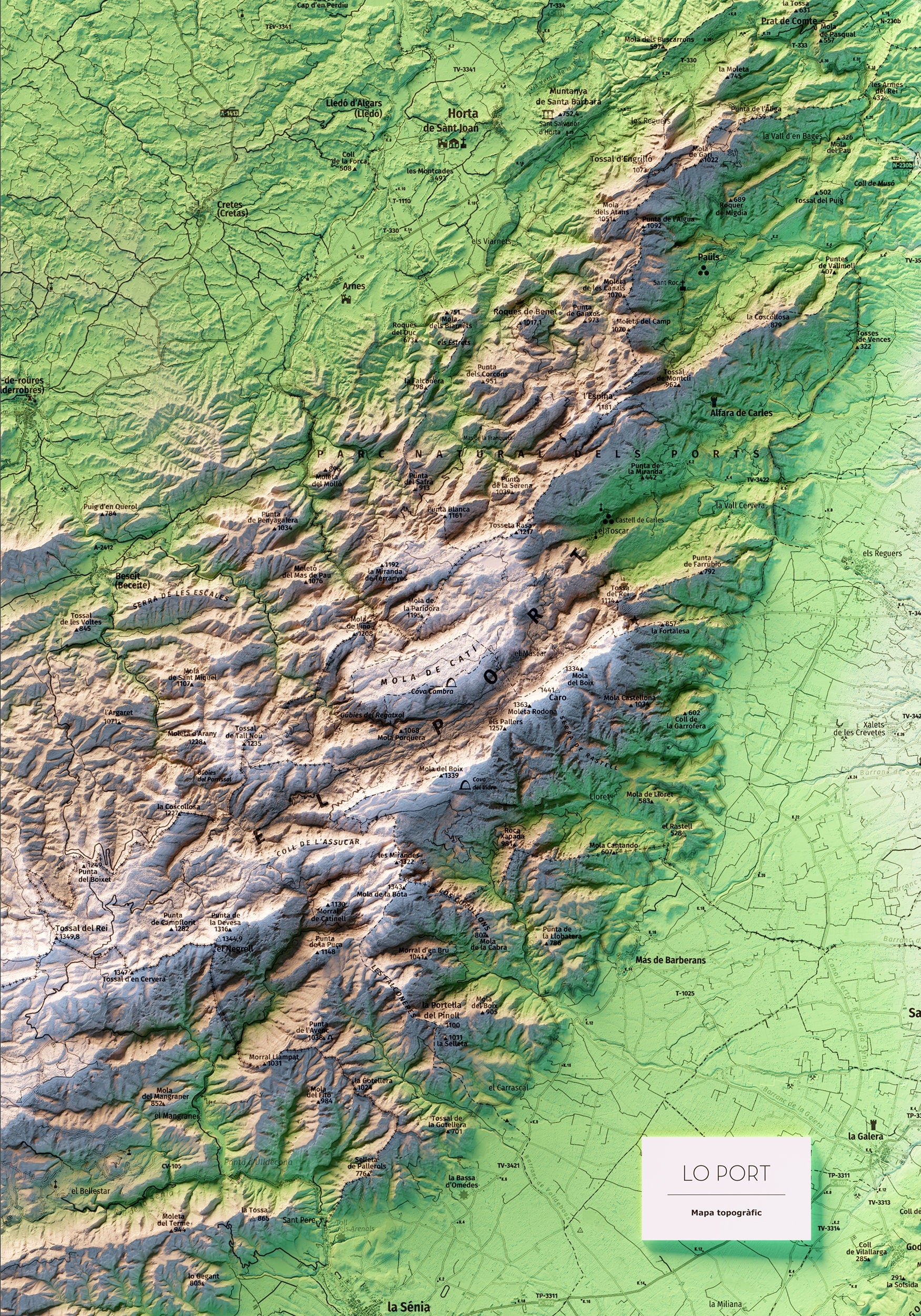 Mapa topográfico en color del parque natural dels Ports (Lo Port).