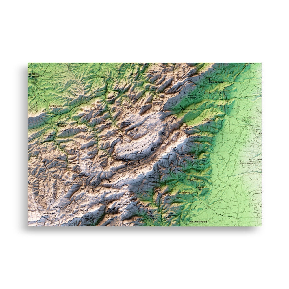 ✪ Encara que l'ombrejat que genera l'efecte 3D ens permet crear unes magnífiques peces d'art visual, pot interferir amb el text del propi mapa. Especialment en zones de muntanya el text pot no ser llegible. Els mapes amb efecte 3D són perfectes per decorar pero no estàn dissenyats per fer-se servir com a referència o per ser consultats a curta distància com es faria amb un atles o un mapa digital.✪ Impresión de calidad.