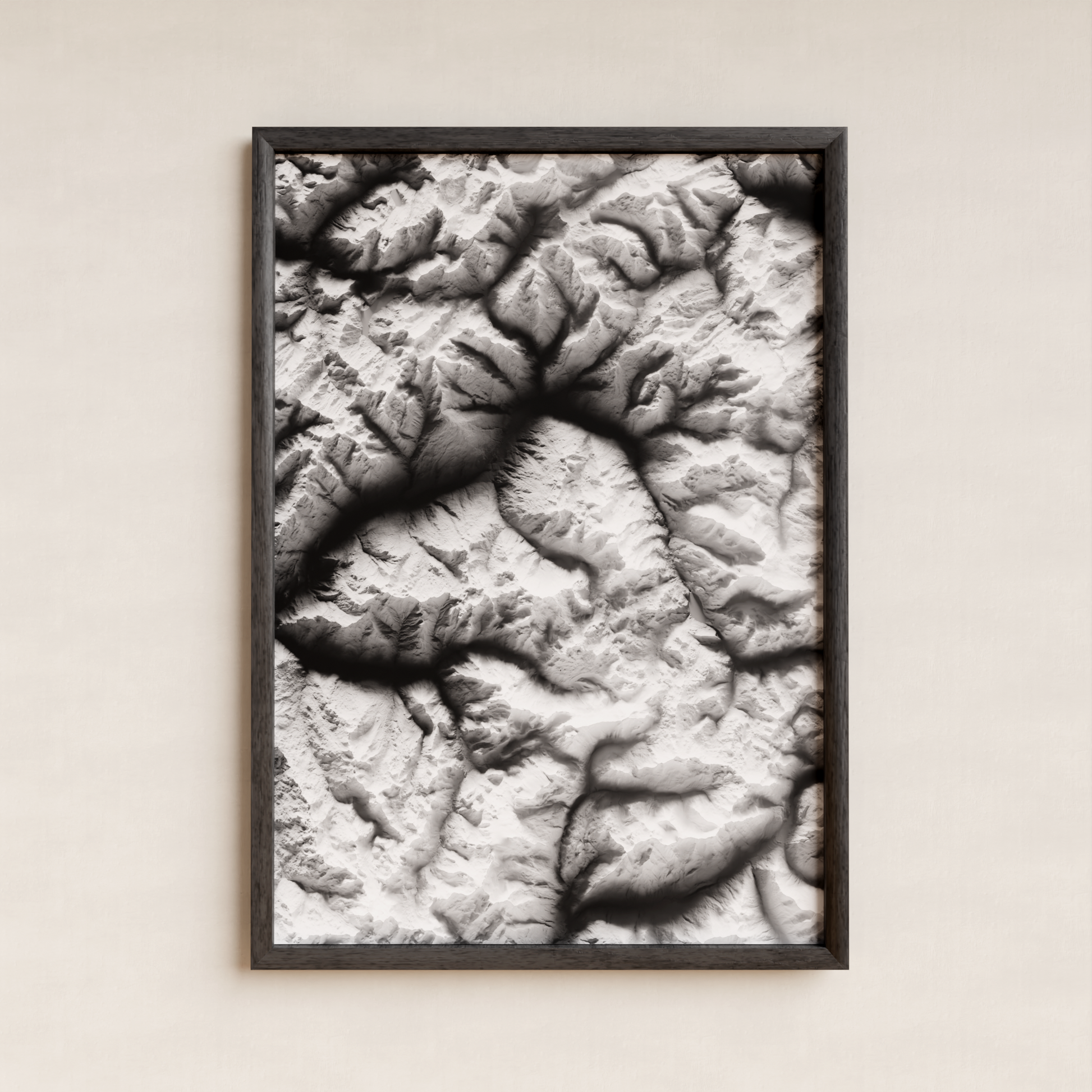 Nuestro mapa de Nancroix está meticulosamente elaborado, con un alivio muy detallado que da vida a los Alpes, lo que le permite experimentar los dramáticos cambios de elevación y la intrincada topografía de esta fascinante región.La paleta de escala de grises, desde negros profundos hasta grises suaves y blancos nítidos, agrega profundidad y sofisticación al mapa, lo que lo convierte en una obra de arte versátil que complementa cualquier estilo interior.