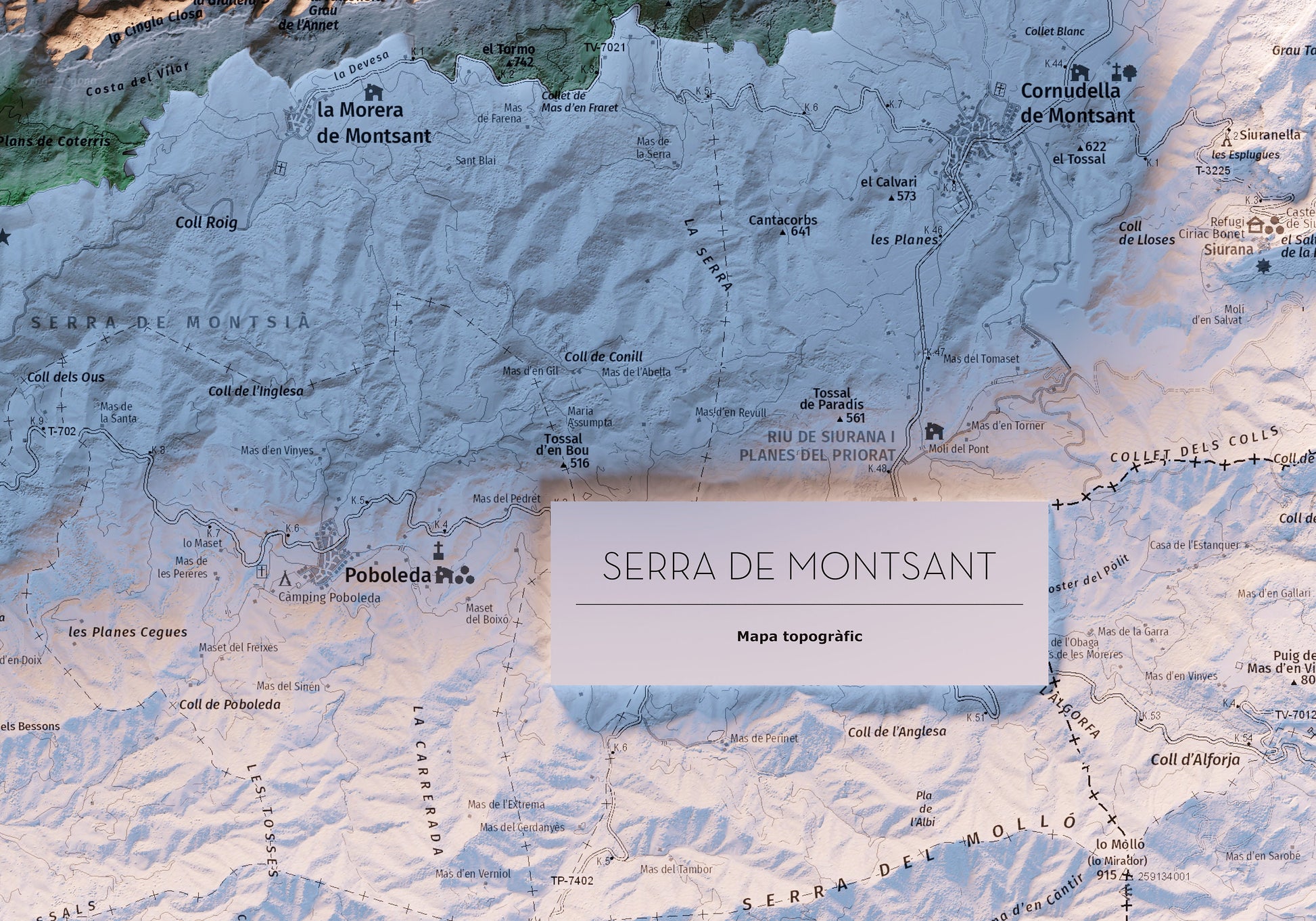 SERRA DE MONTSANT. Mapa topográfico.