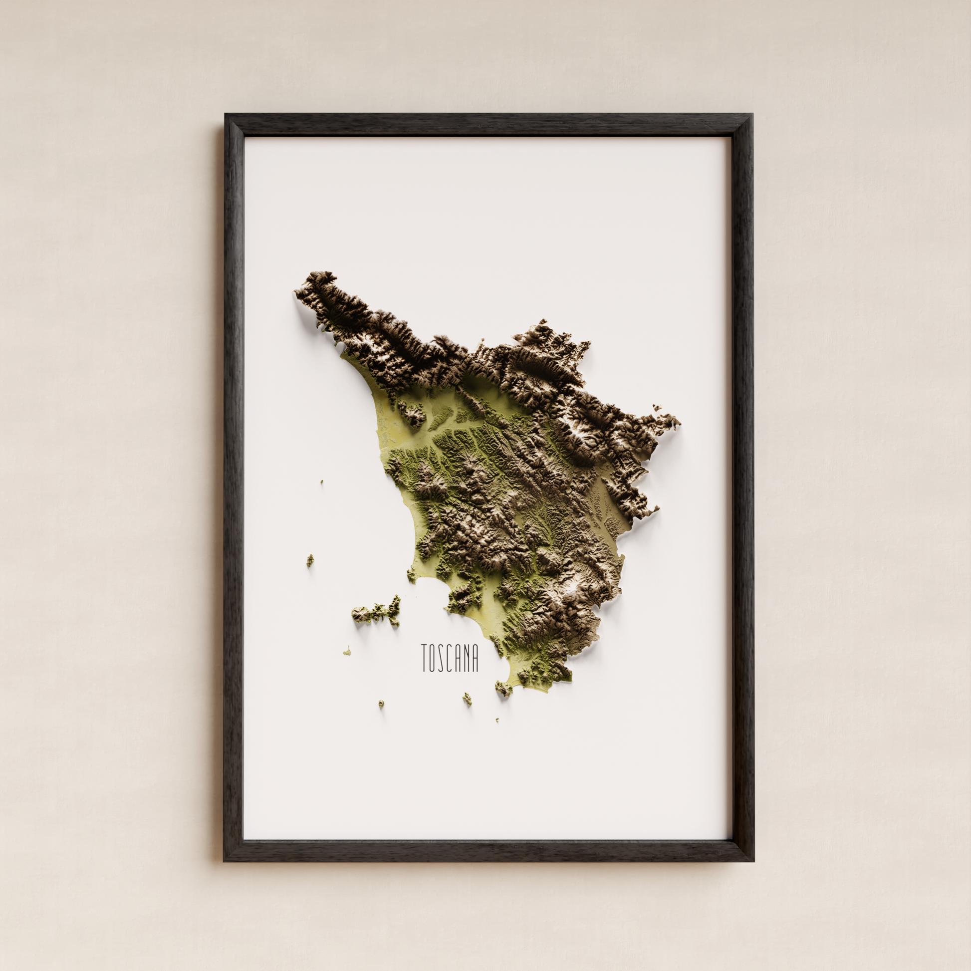 Celebre su amor por la Toscana con este exquisito "Toscana: estampado de mapa de relieve de colores terrosos", una exploración impresionante del encantador paisaje de la región.Explore el mundo de los mapas de Trobart y eleva su espacio con esta evocadora pieza de arte cartográfico que captura la esencia del encanto de la Toscana.