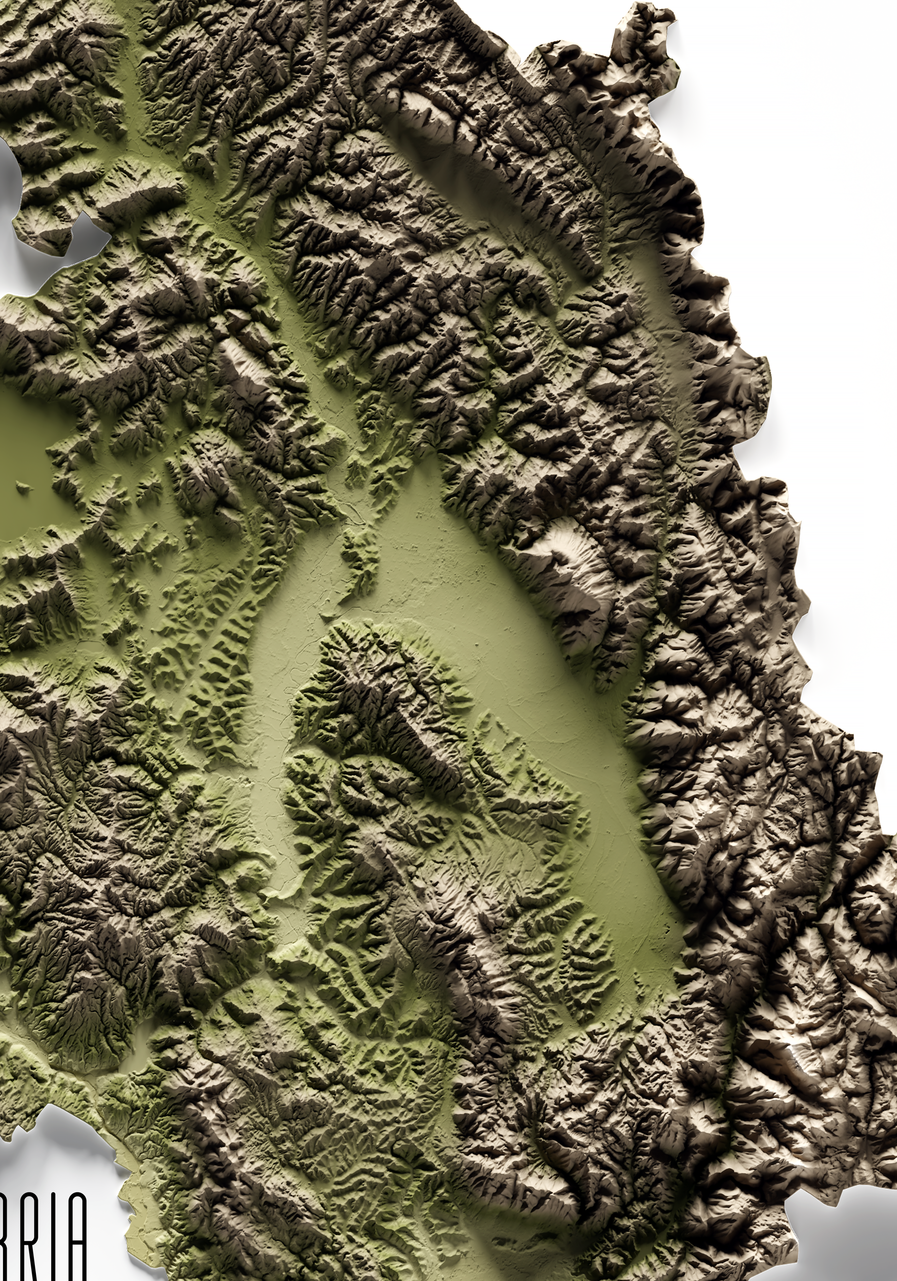 UMBRÍA. Mapa de relieve en colores terrosos.