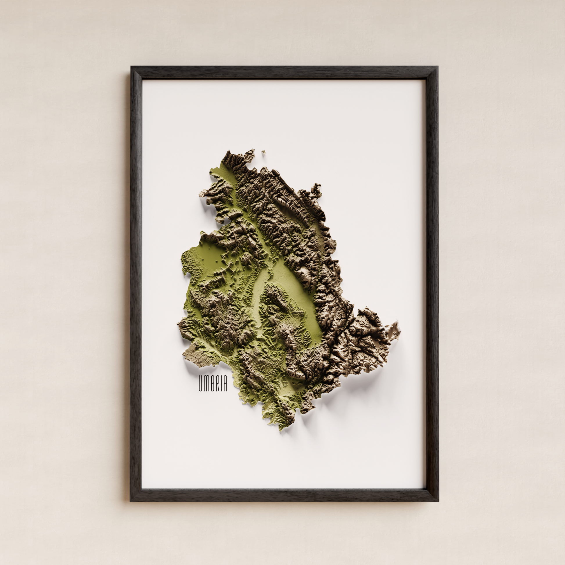 Experimente la belleza auténtica de Umbria con el mapa de colores terrosos de Trobart Maps.Este mapa muestra la geografía de la región con una paleta de colores realista, destacando la variedad en el paisaje, desde pueblos bulliciosos hasta lagos serenos, y desde colinas onduladas hasta exuberantes valles.